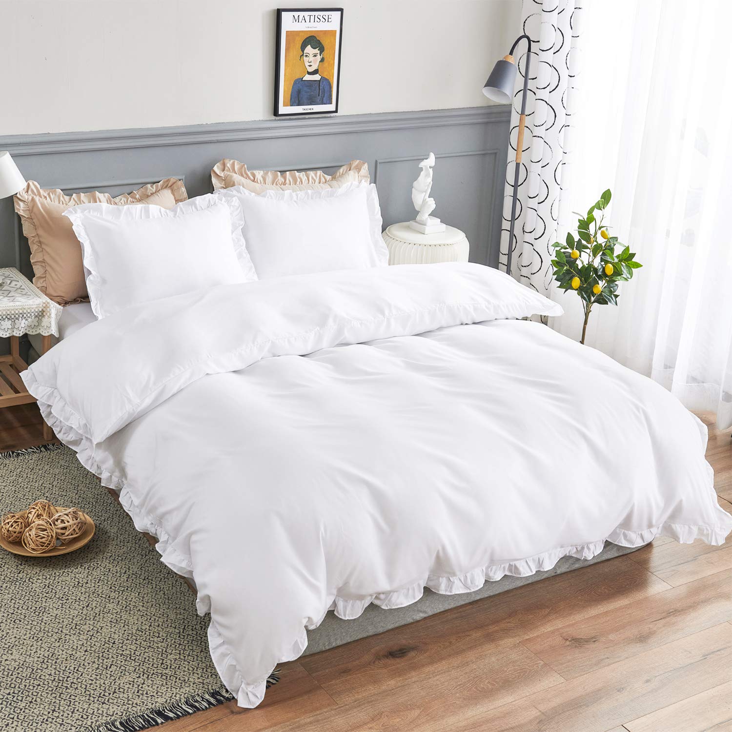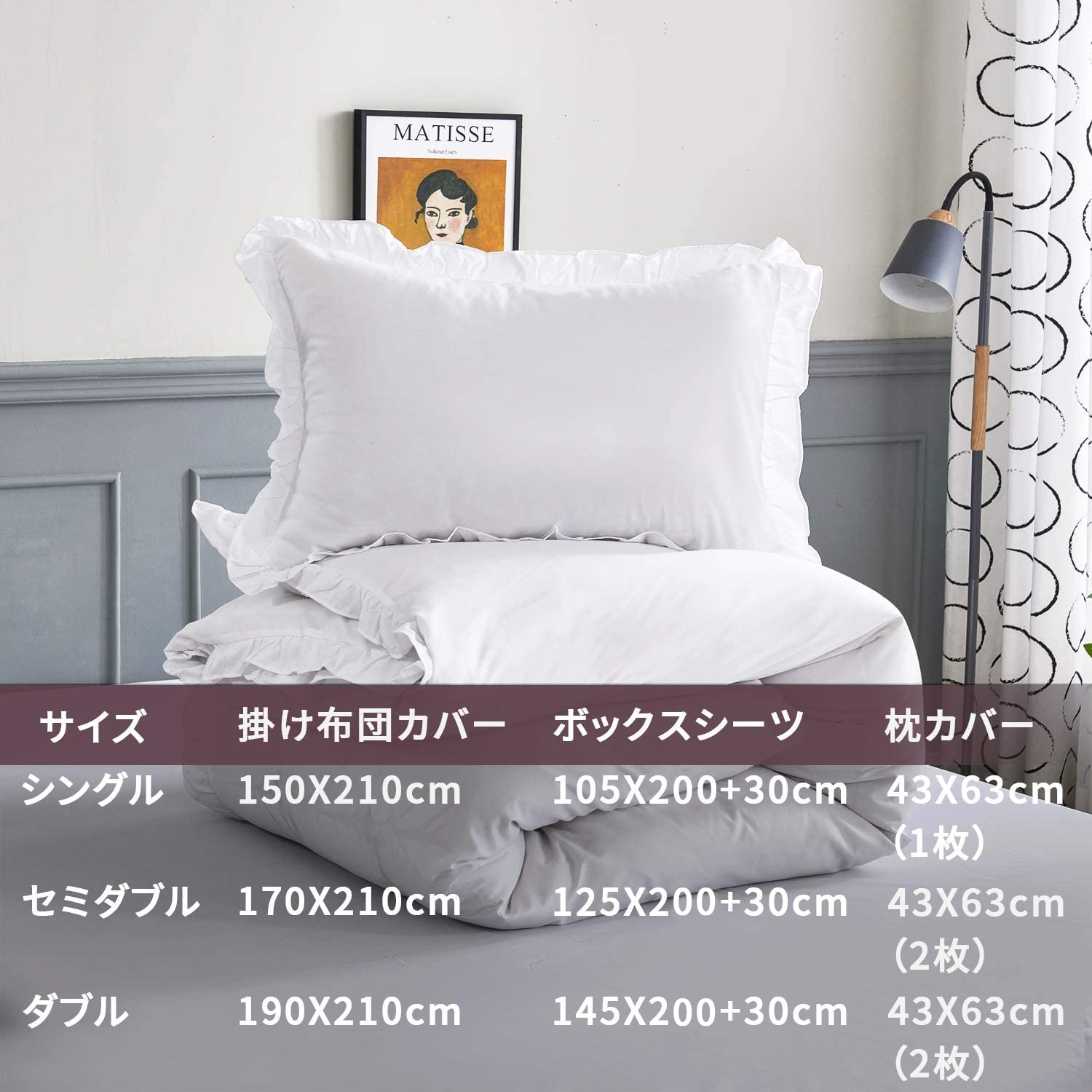 【おしゃれなデザイン】 布団カバーと枕カバーの周りには可愛いフリルが付いています。無地柄でどんなインテリアにも馴染みやすいシンプルなデザインです。体と心の疲れを癒し、快い睡眠を毎日楽しんでいただけます。