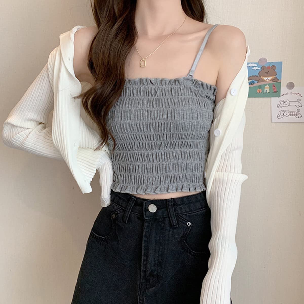 [Weuiean] レディース キャミソール 取り外し可能カップ付き 長い カップ付きキャミソール インナートップス チューブトップ ナイトブラ 春夏 フリーサイズ ZZB-13