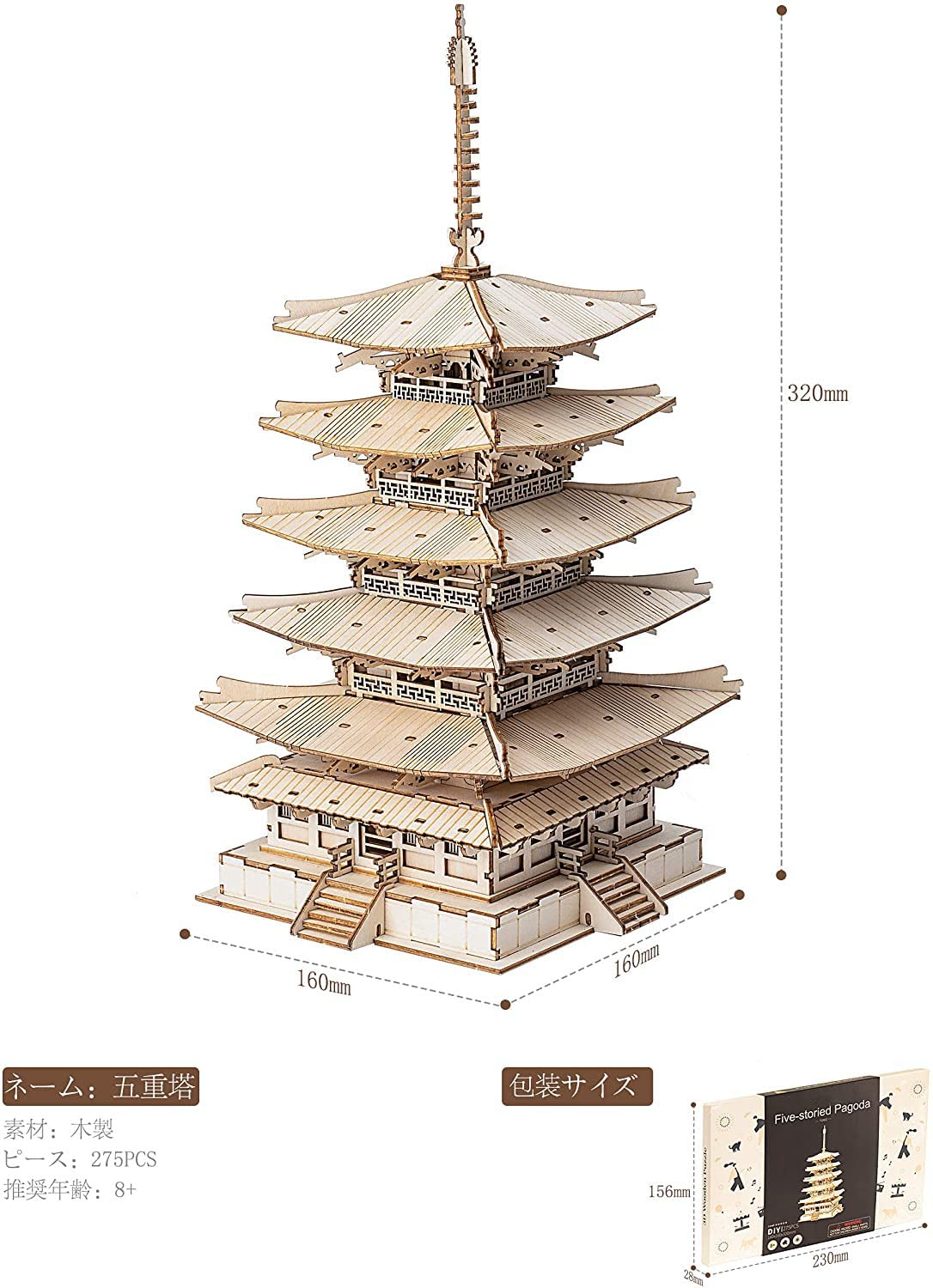 Robotime 立体パズル 木製パズル 3dパズル 工作キット DIY クラフト 模型製作キットおもちゃ 知育玩具 子供 大人 ギフト 誕生日 クリスマス プレゼント 最高の贈り物 法隆寺 五重の塔