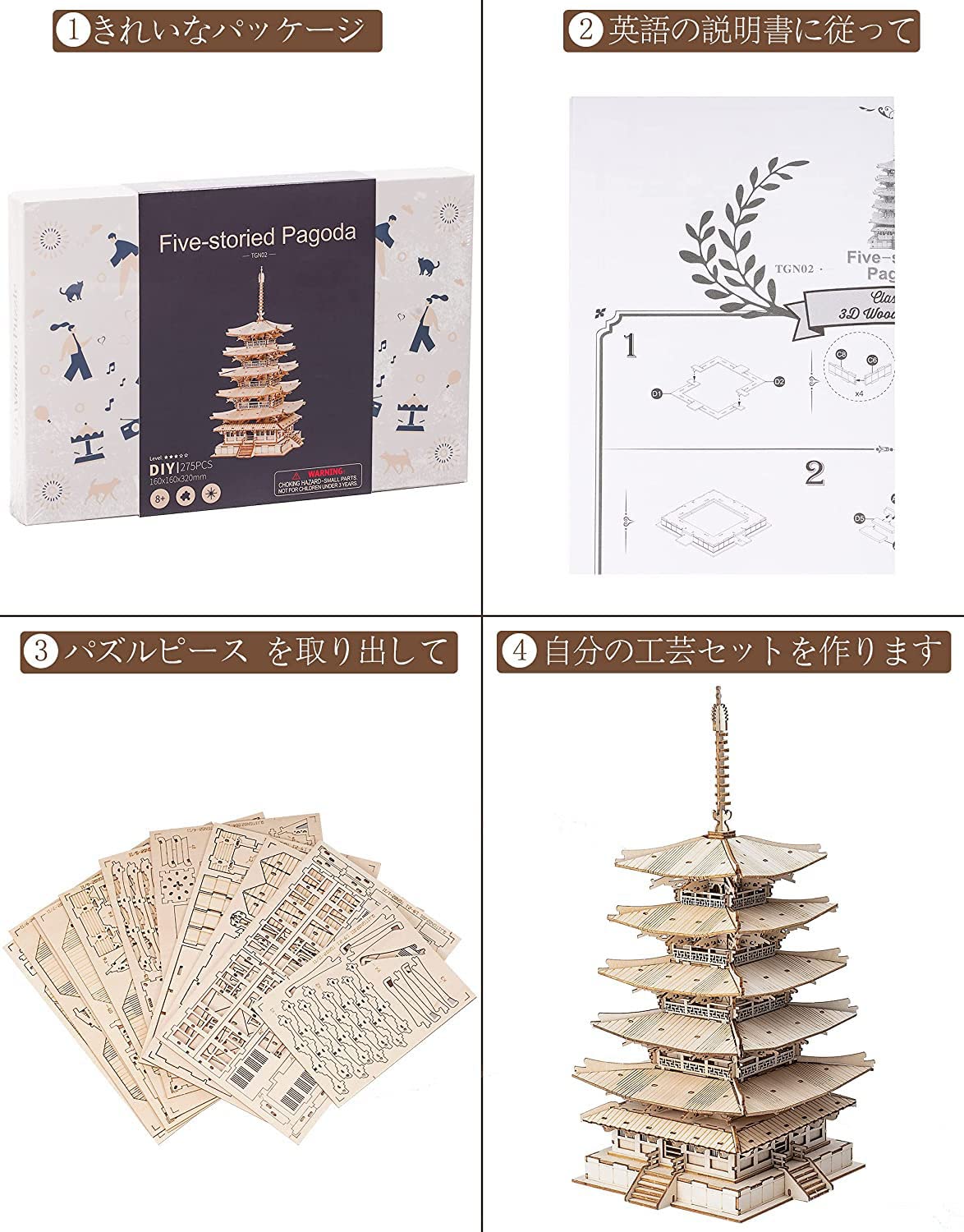 有意義なDIY体験:立体パズルは考える力を鍛える「脳トレ」としても注目されています。歴史を学びながら脳のトレーニングにもなる、3Dウッドパズルの五重塔は、お子様の知育玩具やお年寄りのレクリエーショングッズにもぴったりです。