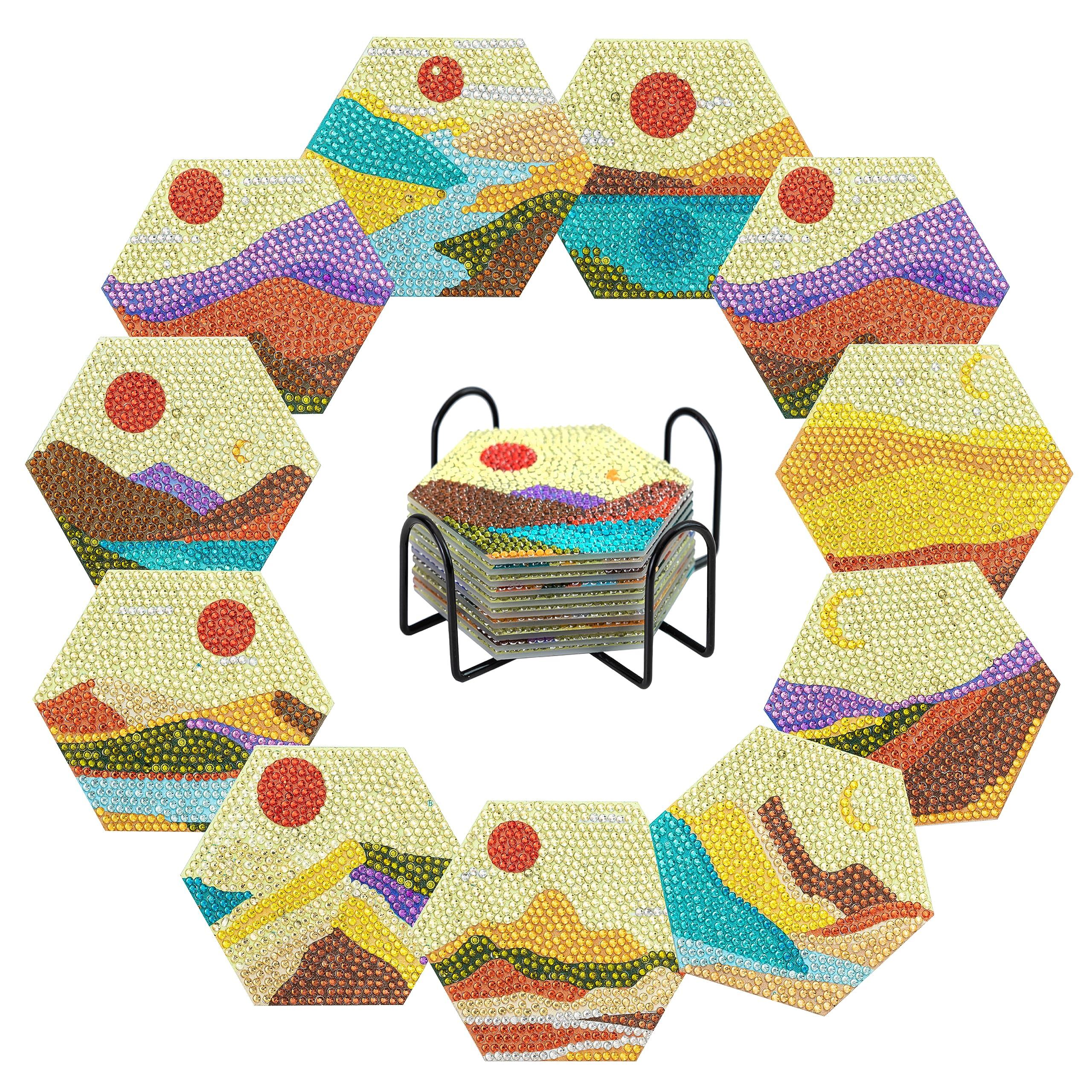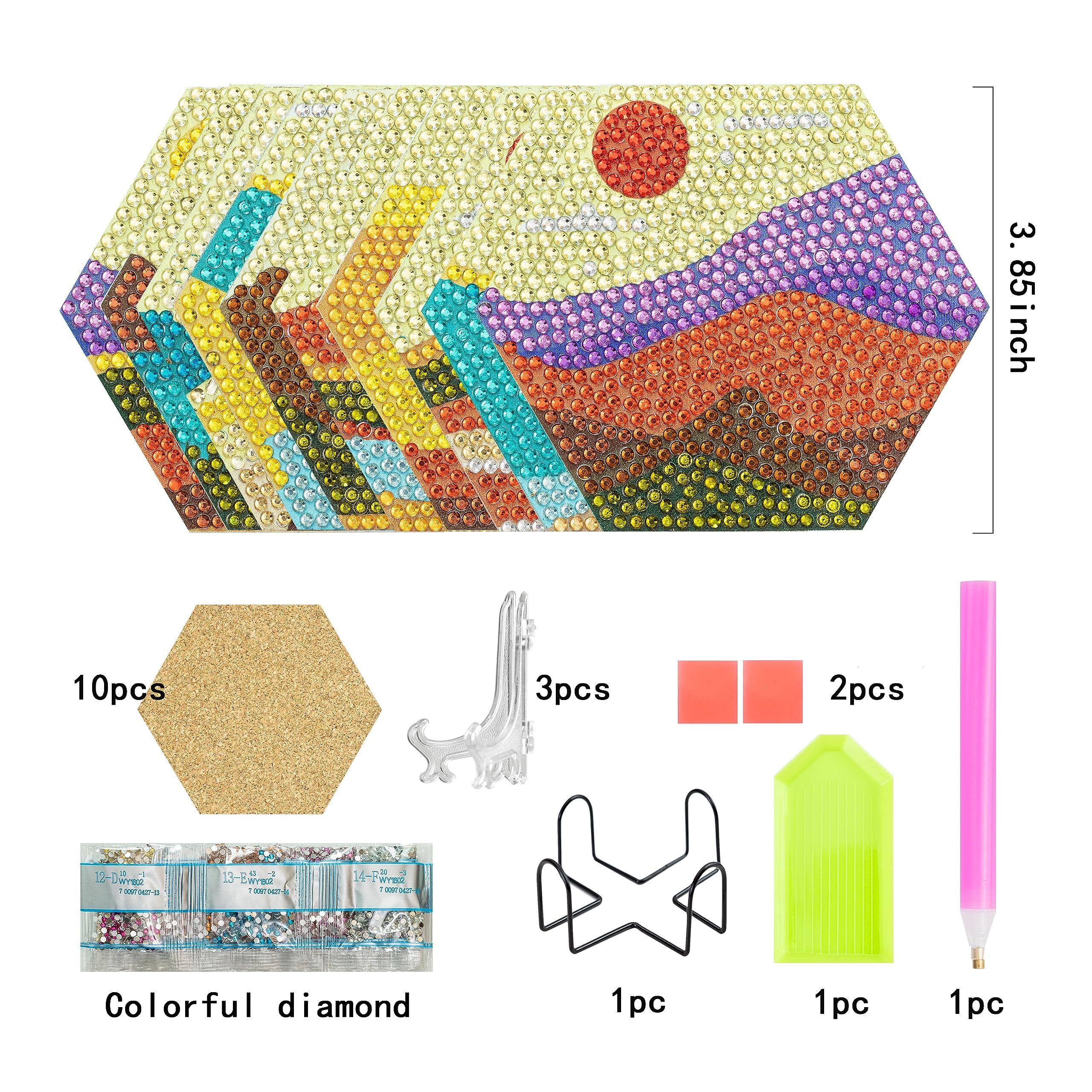 【セール】10ピースダイヤモンドアートコースターキットダイヤモンドアートペインティングキットDIYダイヤモンドペインティング5Dダイヤモンドペインティングスタンド付きコースターディスプレイスタンド、初心者に最適大人子供手作りアートクラフト (日落余?)