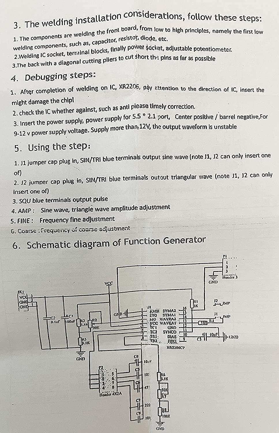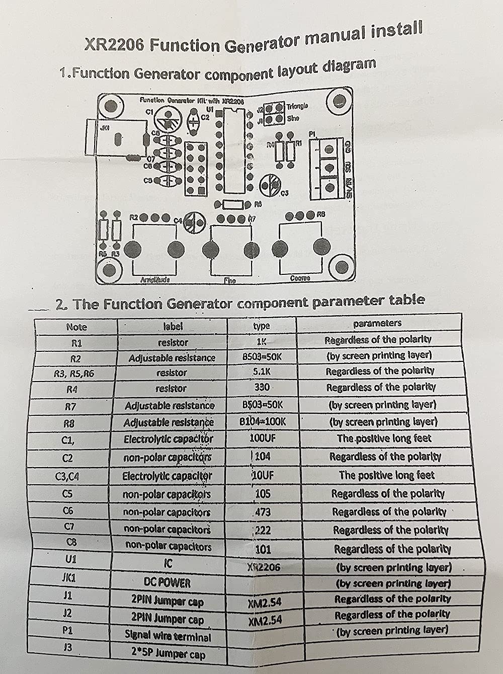 XR2206 信号発生器 高精度 ファンクション信号発生器 DIYキット 正弦/三角/正方形 出力1Hz〜1MHz 周波数振幅調整可能