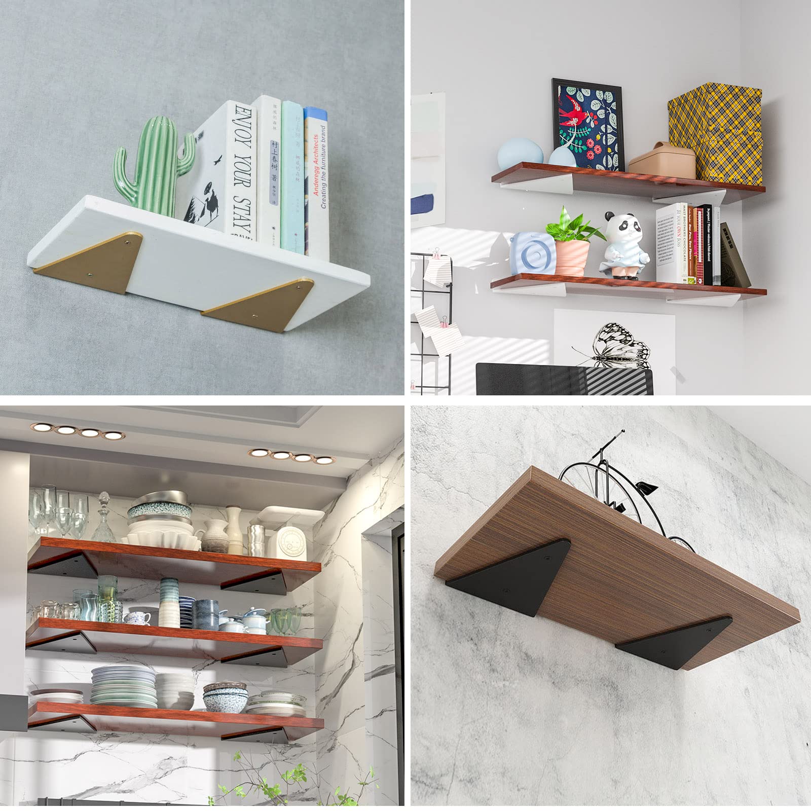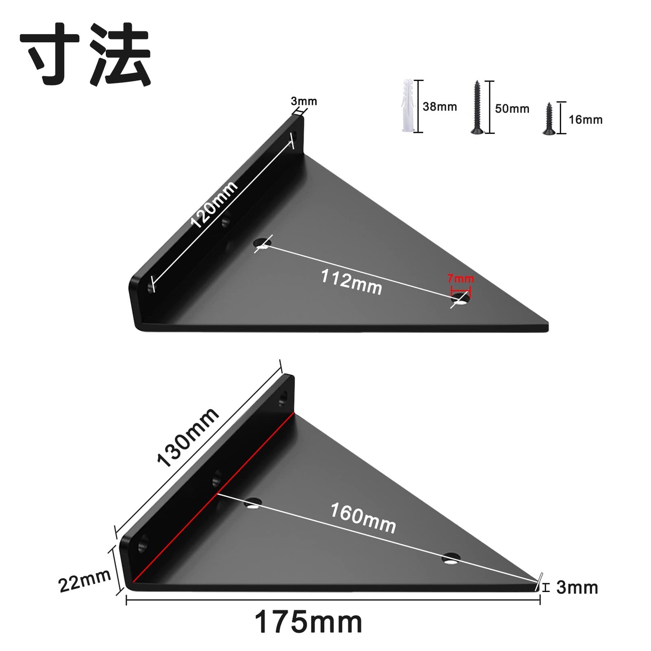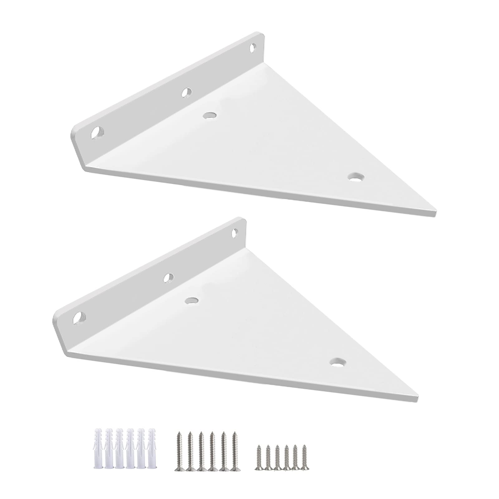 【人気】2個 棚受け 隠し 金具 L字 黒 白 金 隠し 棚受けブラケット、diy 棚 壁 取り付け 棚受け金具 幅13cm 深さ16cm 厚さ3mm 棚支え ブラケット、 おしゃれ 棚板 収納棚と展示棚用、ビス付 取付簡単 (白)