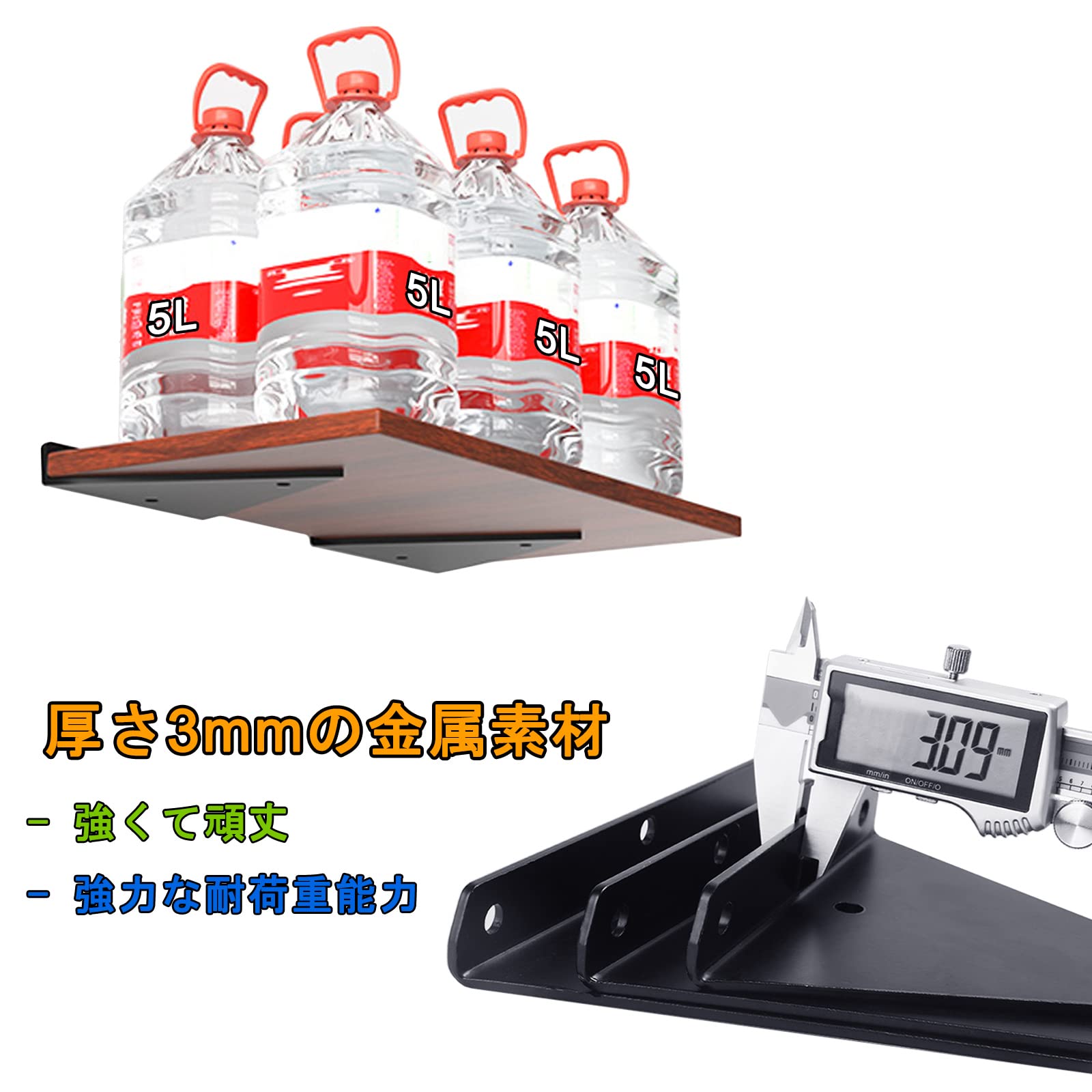 高品質の金属素材:棚板は厚さ3mmの高密度金属鉄でできており、丈夫で安定、耐久性があり、長寿命です