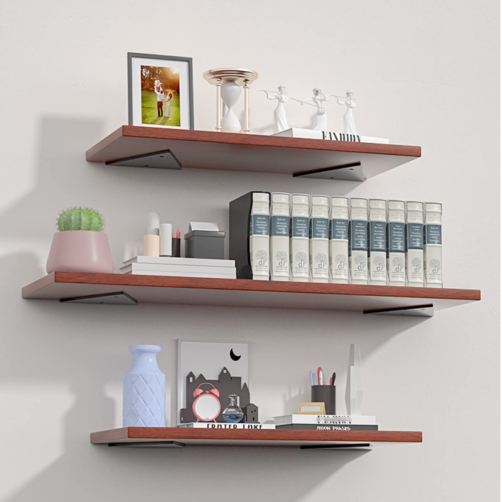 隠しデザイン:隠しフローティングシェルフブラケットは、エレガントな収納とディスプレイを提供します。 どの部屋にも追加の壁スペースを作成できます