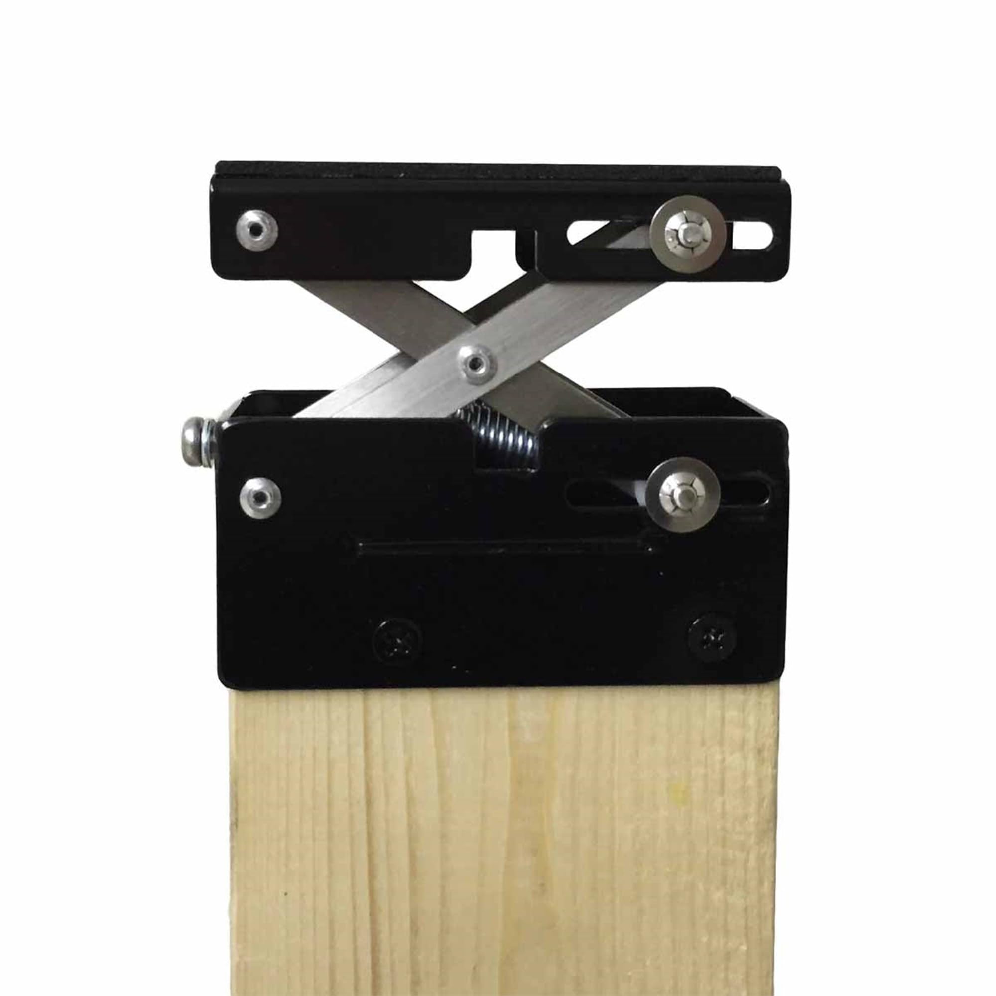 ジャッキ+バネの力で、市販のツーバイ材をしっかり固定でき、オリジナルの棚が簡単に作れる