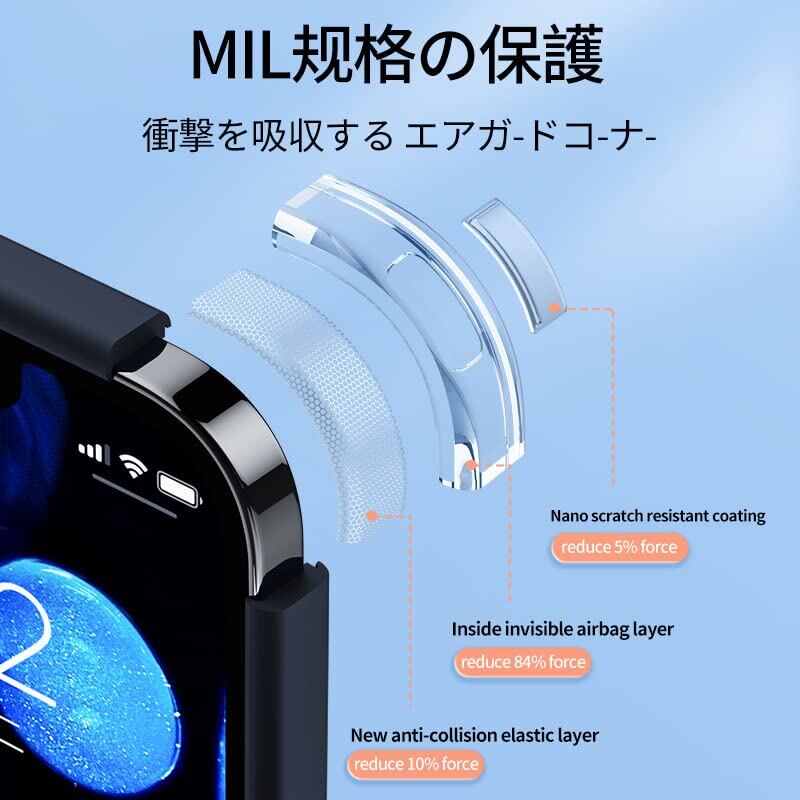 【米軍MIL規格の落下防止】すべての面を完全に保護できるよう厳密にテストされ、特別に設計された衝撃吸収エアガードコーナーにより、スマホへの衝撃を和らげます。