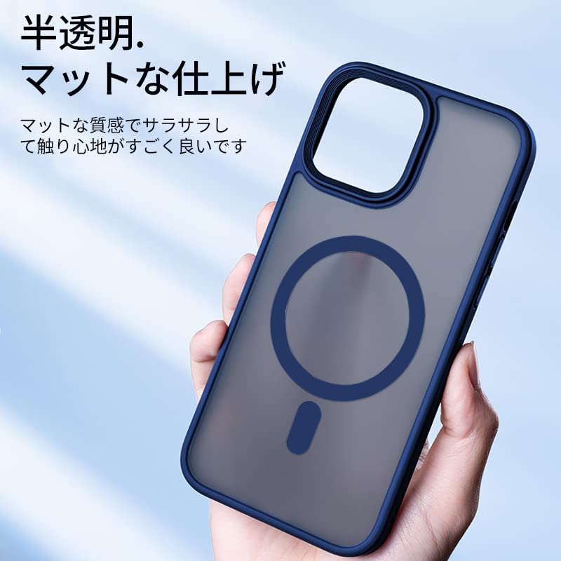 【新着】【米軍規格・Magsafe対応】Gtsoho iPhone 11 Pro Max 用 ケース マグネット搭載 ワイヤレス充電 半透明 耐衝撃 マット 全面保護 黄ばみなし ストラップホール付き アイフォン 11ProMax用 カバー マグセーフ対応 ブルー
