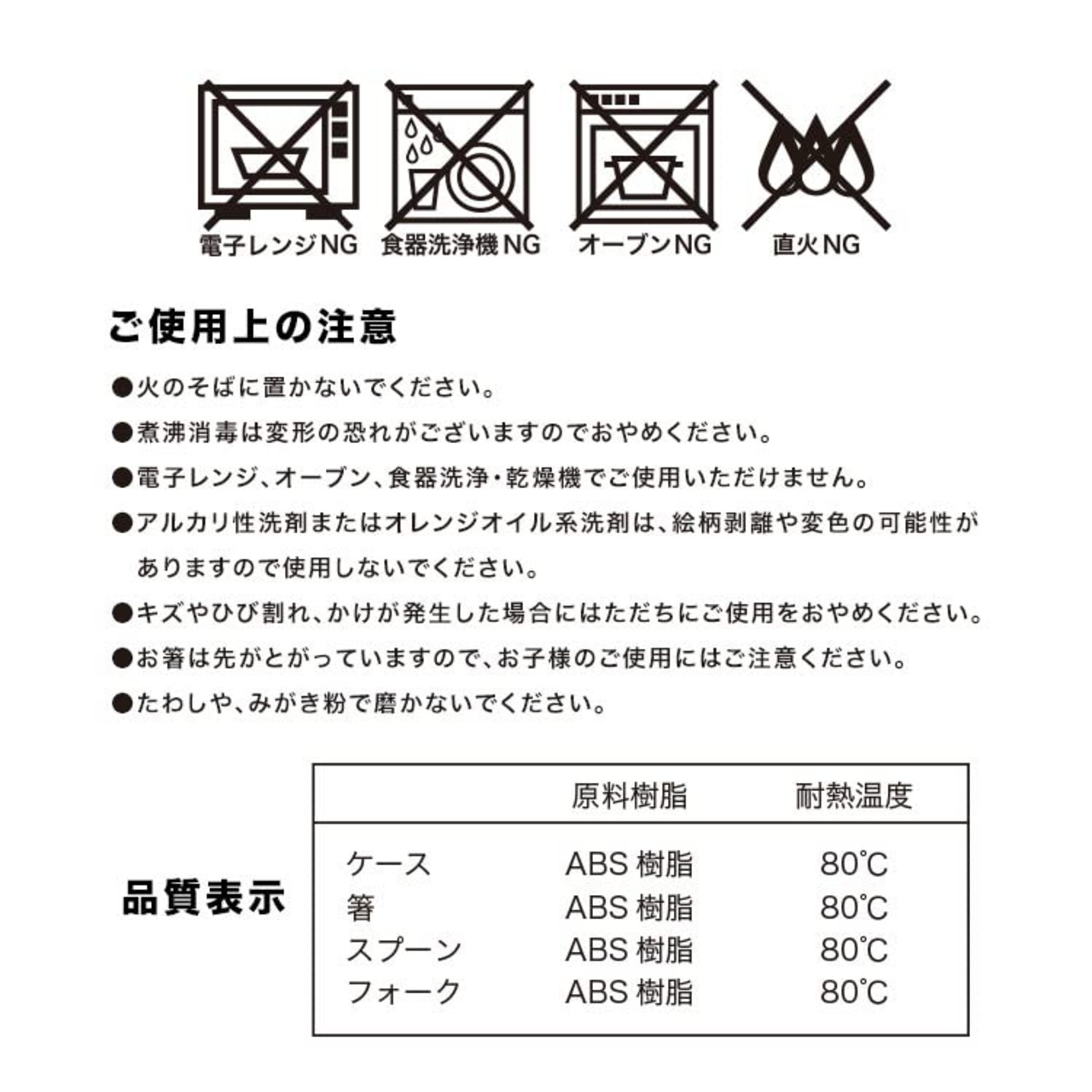 箸・スプーン・フォークは重ねて収納できるため、コンパクトにお持ちいただけます。