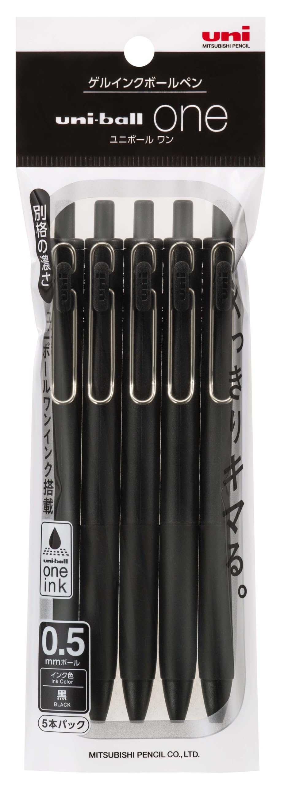 商品名:三菱鉛筆 ゲルボールペン ユニボールワン 0.5 黒 黒軸 5本パック UMNS055PBK.24