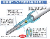 これまでの4色+シャープの商品に比べ、使用頻度の高い黒と赤の2色に絞ることにより、軸径を約1.5mmダウンサイズ。