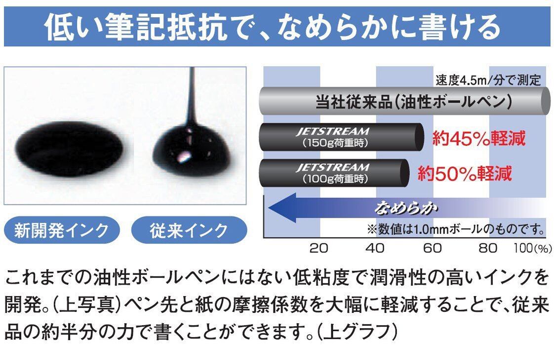 スリム化かつ軽量化をすることで、最適なウェイトバランスとグリップのホールド感が向上し、超・低摩擦ジェットストリームインクのなめらかな書き心地をより実感できる多機能ペンです。