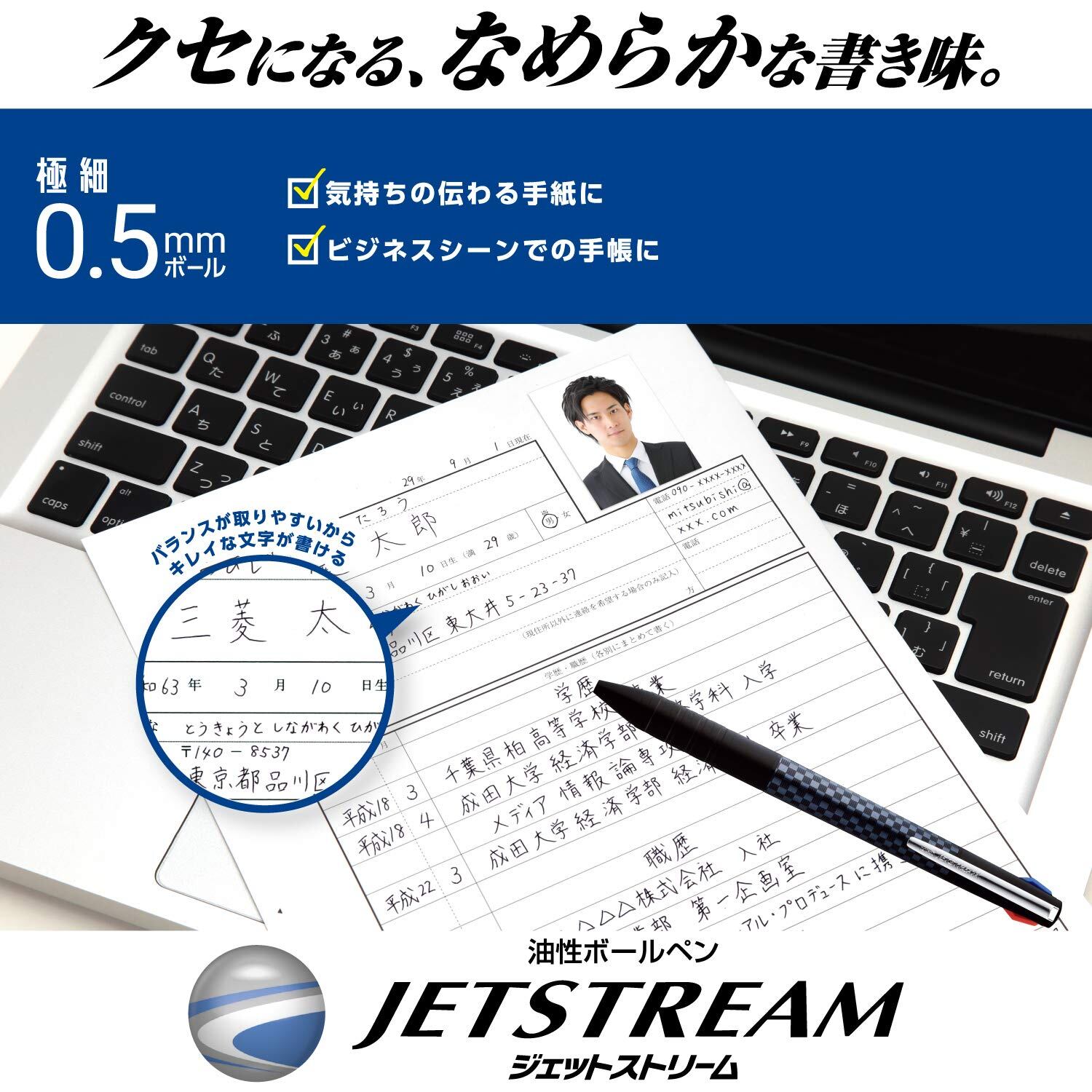 .クセになる、なめらかな書き味。超・低摩擦ジェットストリームインク搭載、極めてなめらかな書き味を実現。