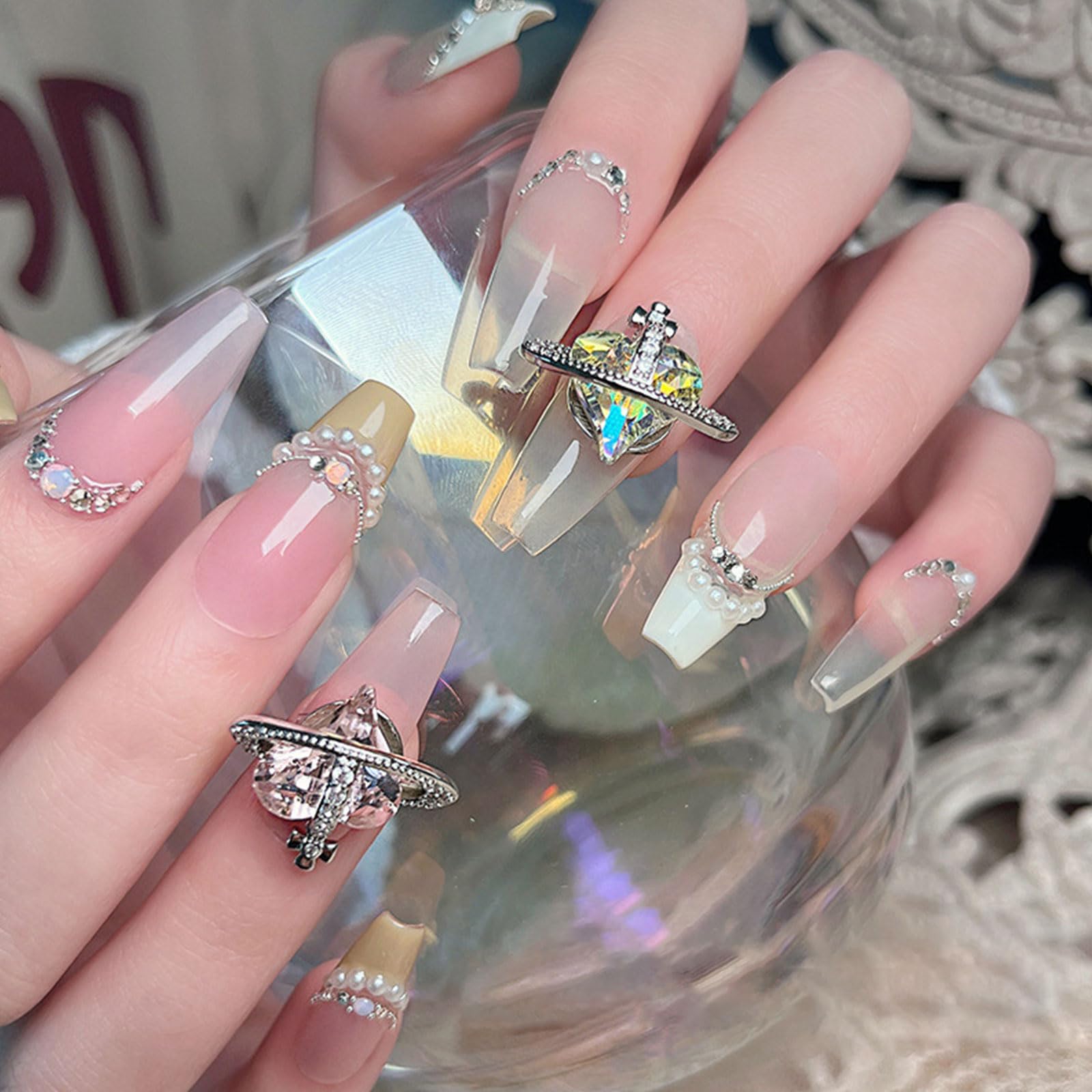 【絶妙な装飾】高品質のラインストーン、美しく磨かれ、輝いています。 美しさと光沢への欲求を満たし、ネイルの魅力を高め、よりエレガントで魅力的にします。 きっとあなた好みの素敵なネイルデザインが完成します。