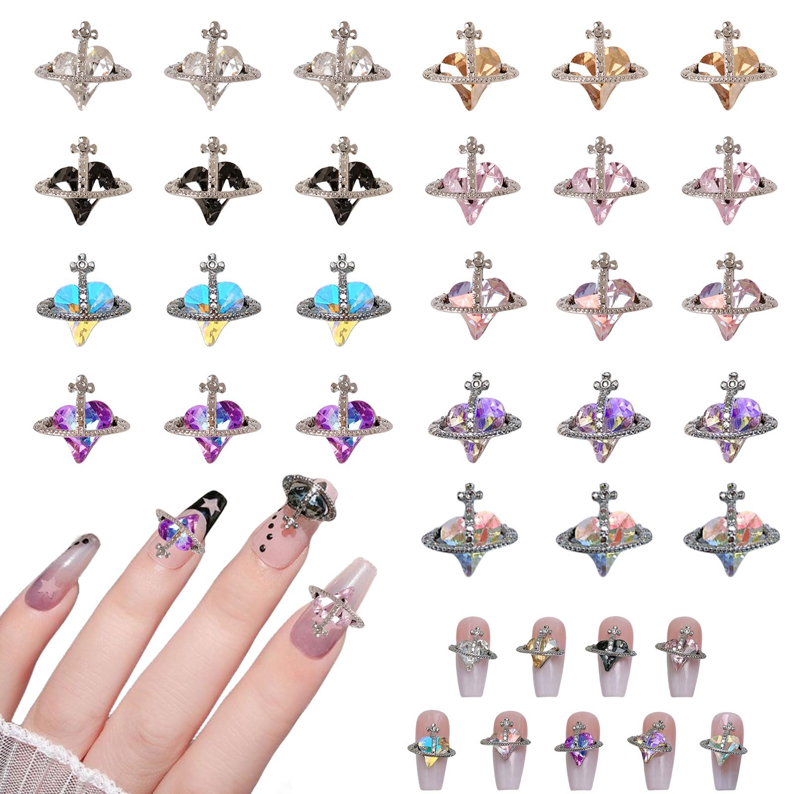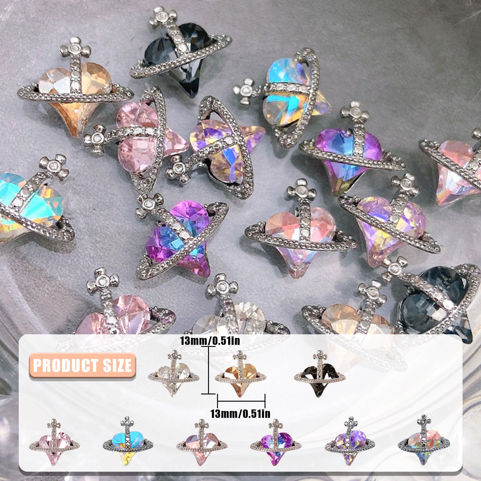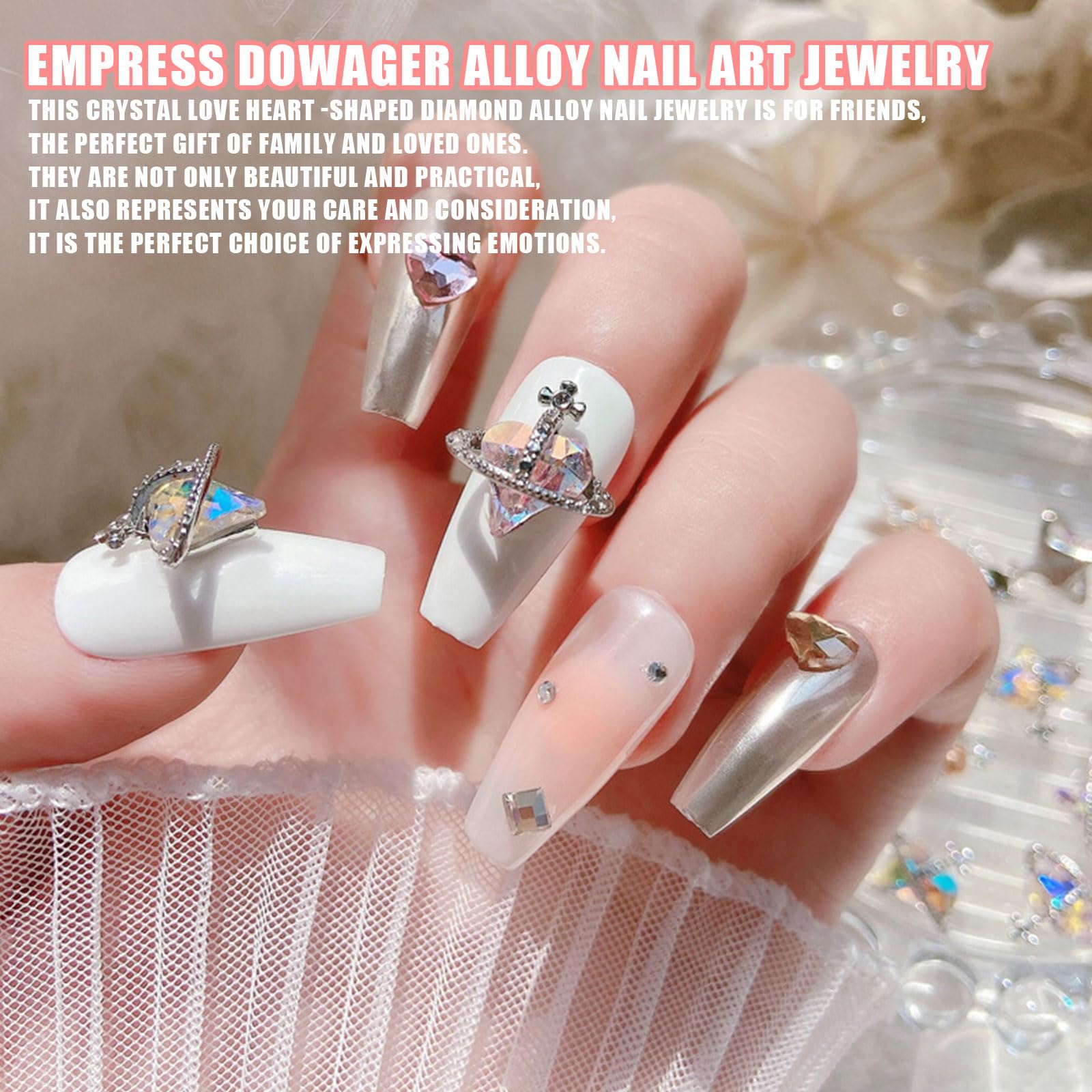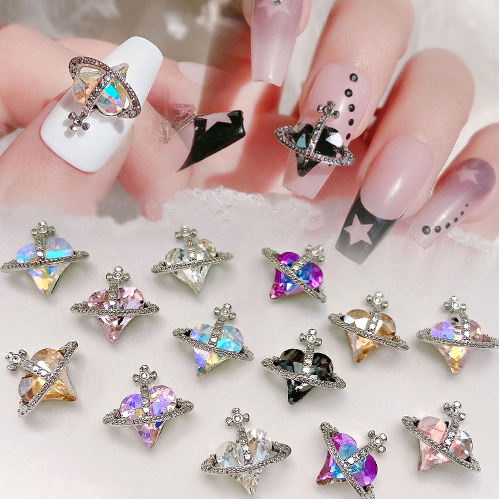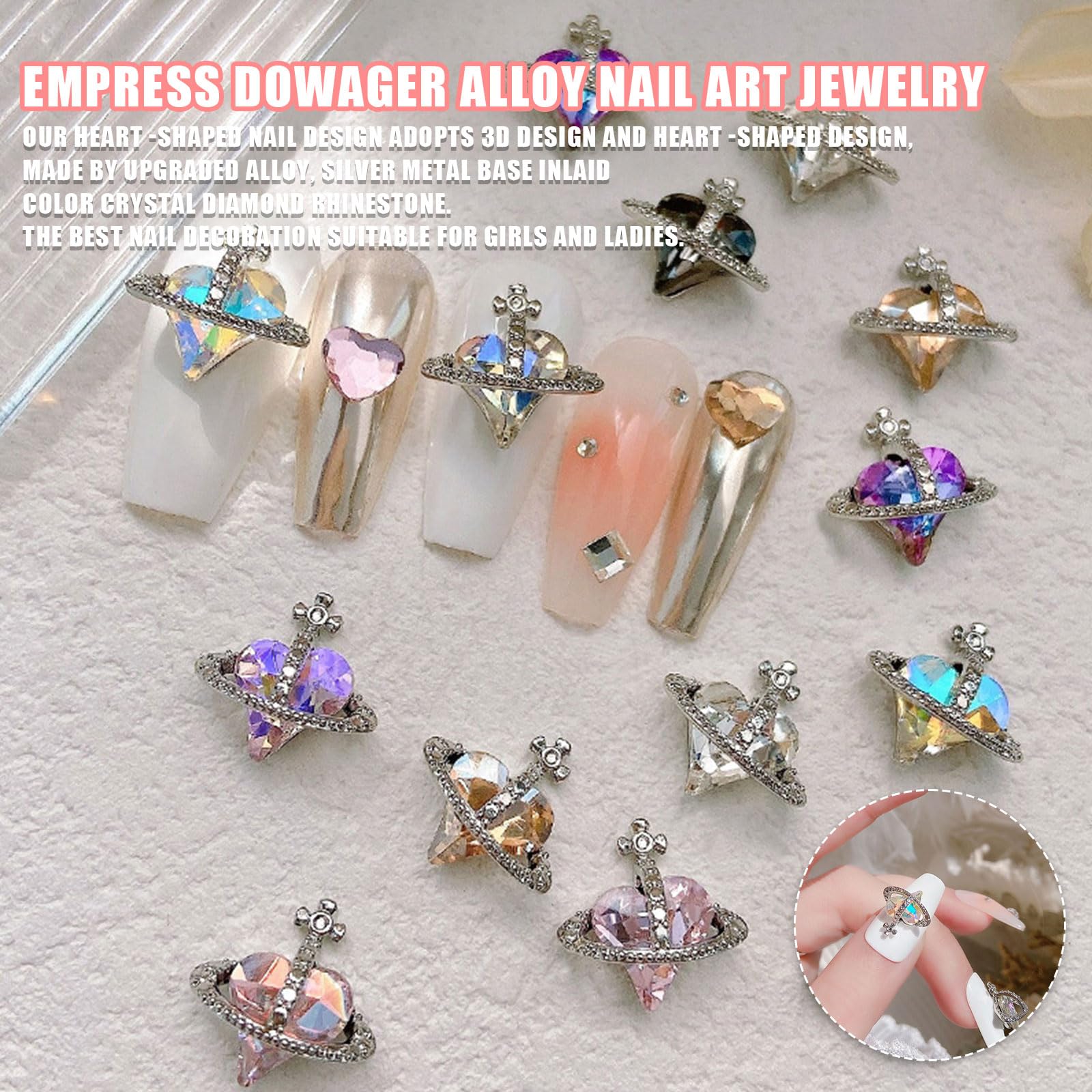 【素材】ハート型ネイルパーツは高品質の合金とクリスタルで作られており、耐久性があり、錆びません。