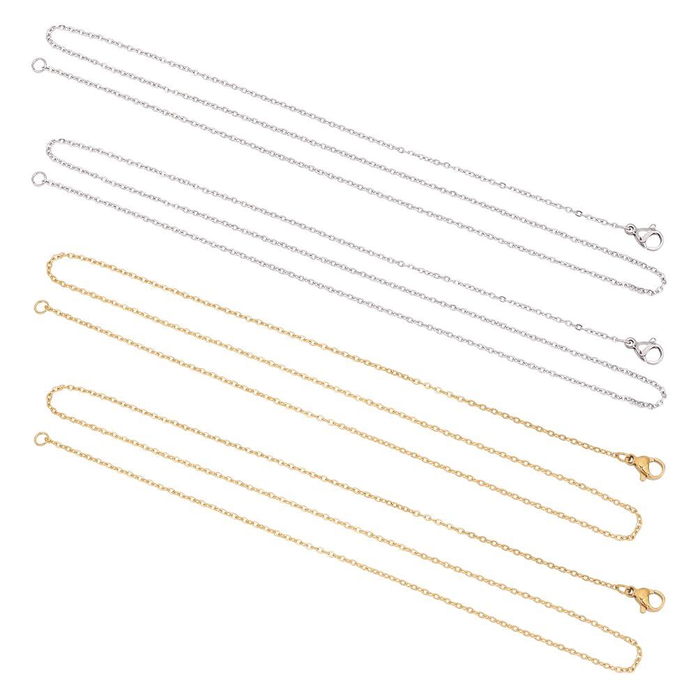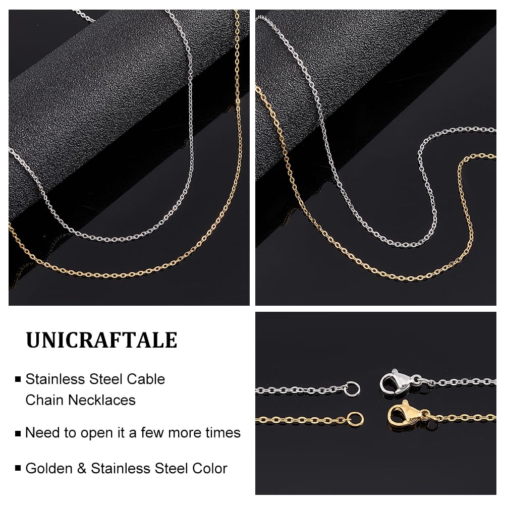 [UNICRAFTALE] 約12本 2色 50cm 2mm太さ チェーンネックレス ステンレス チェーン ケーブルチェーン ネックレスチェーン 極細 カニクラスプ付き 留め具付き ゴールデン ステンレスス色 ネックレス チェーン セット メンズレディジュエリー アクセサリーパーツ ストリンギング材料 クラフト用品 手作り素材 DIY材料