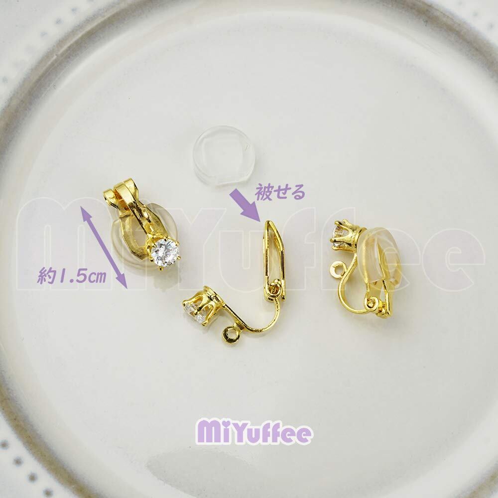 イヤリングクリップとカバーのセットで、耳たぶに挟むように使うタイプのイヤリングを作成するためのハンドメイド用金具です。4mmのラインストン付き、高級感がアップ、耳元で輝き、綺麗に見えます。