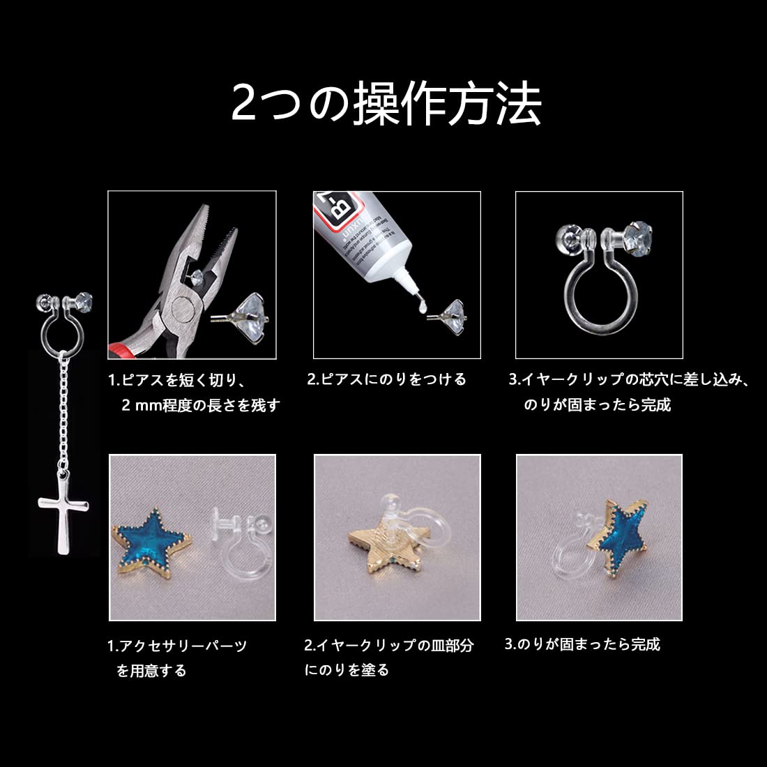 【DIYオリジナル】このノンホールピアスパーツのセットをもって、アイデア次第で素敵なオリジナルイヤリングが作れちゃいます。 クリアタイプなので、ピアスをつけているようでとても自然に見えます。