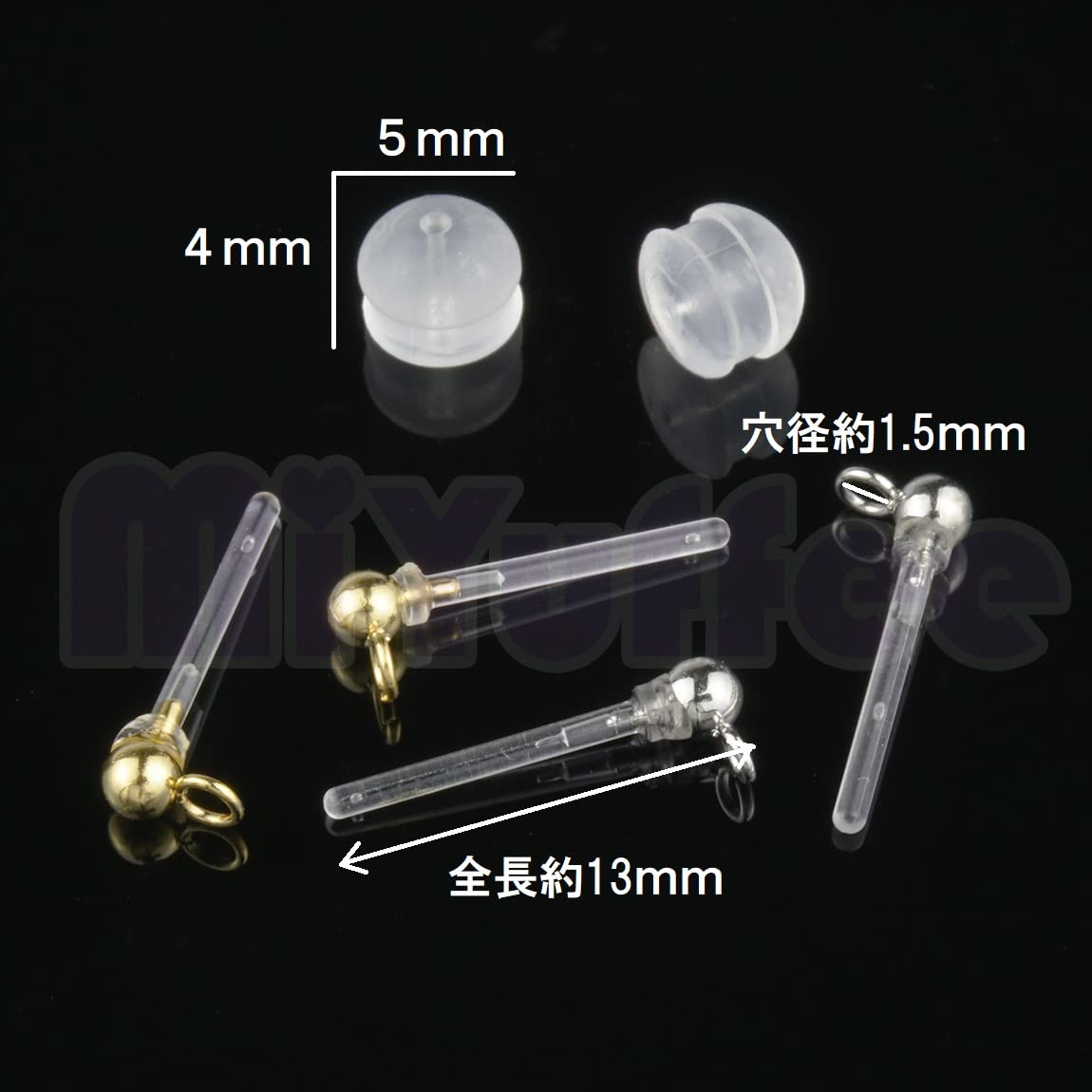 素材:樹脂、サージカルステンレス 個数:10ペア20個 カラー:2色(ゴールド、シルバー) サイズ:全長約13mm