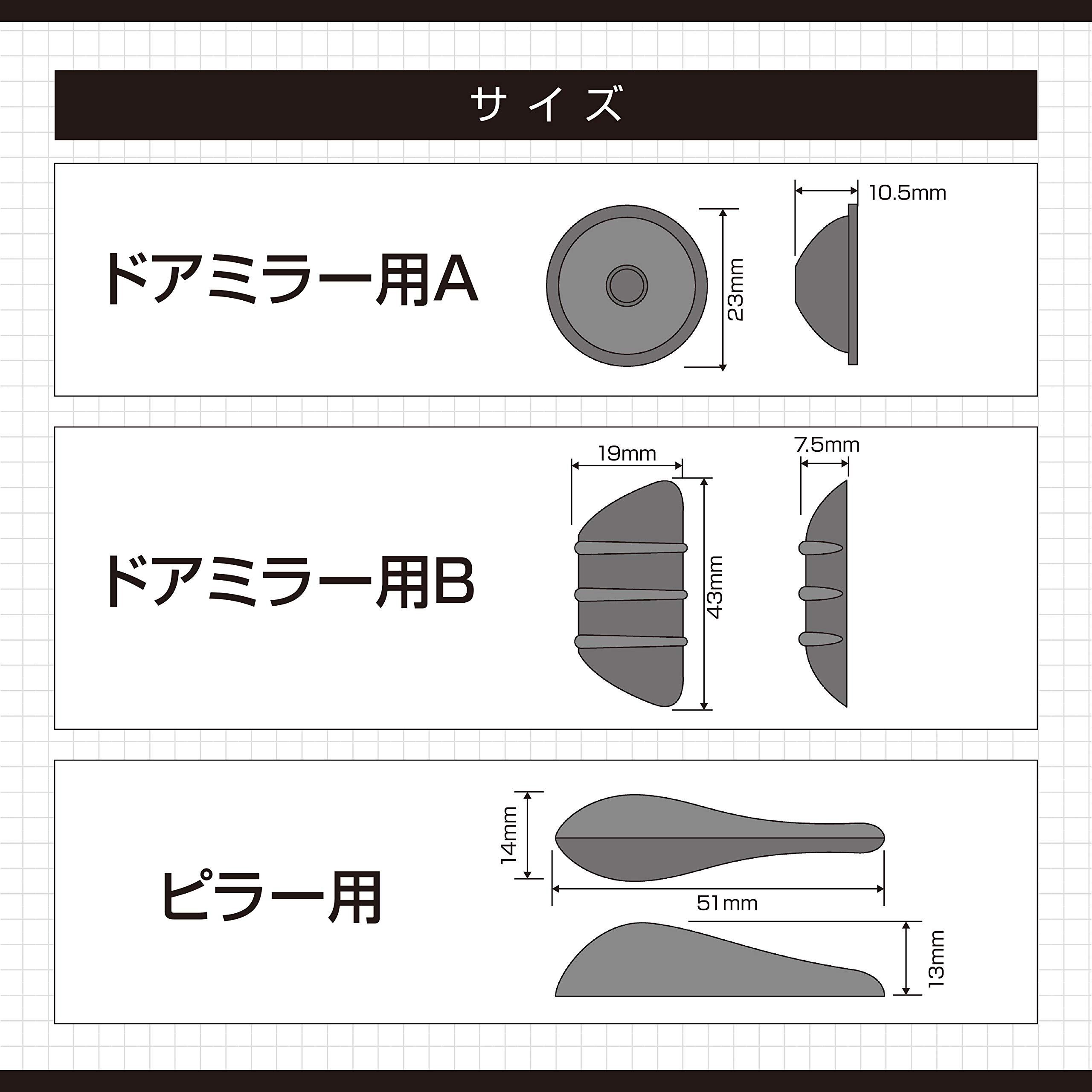 ドアミラー用A・・・2個/ドアミラー用B・・・2個/ピラー用・・・6個