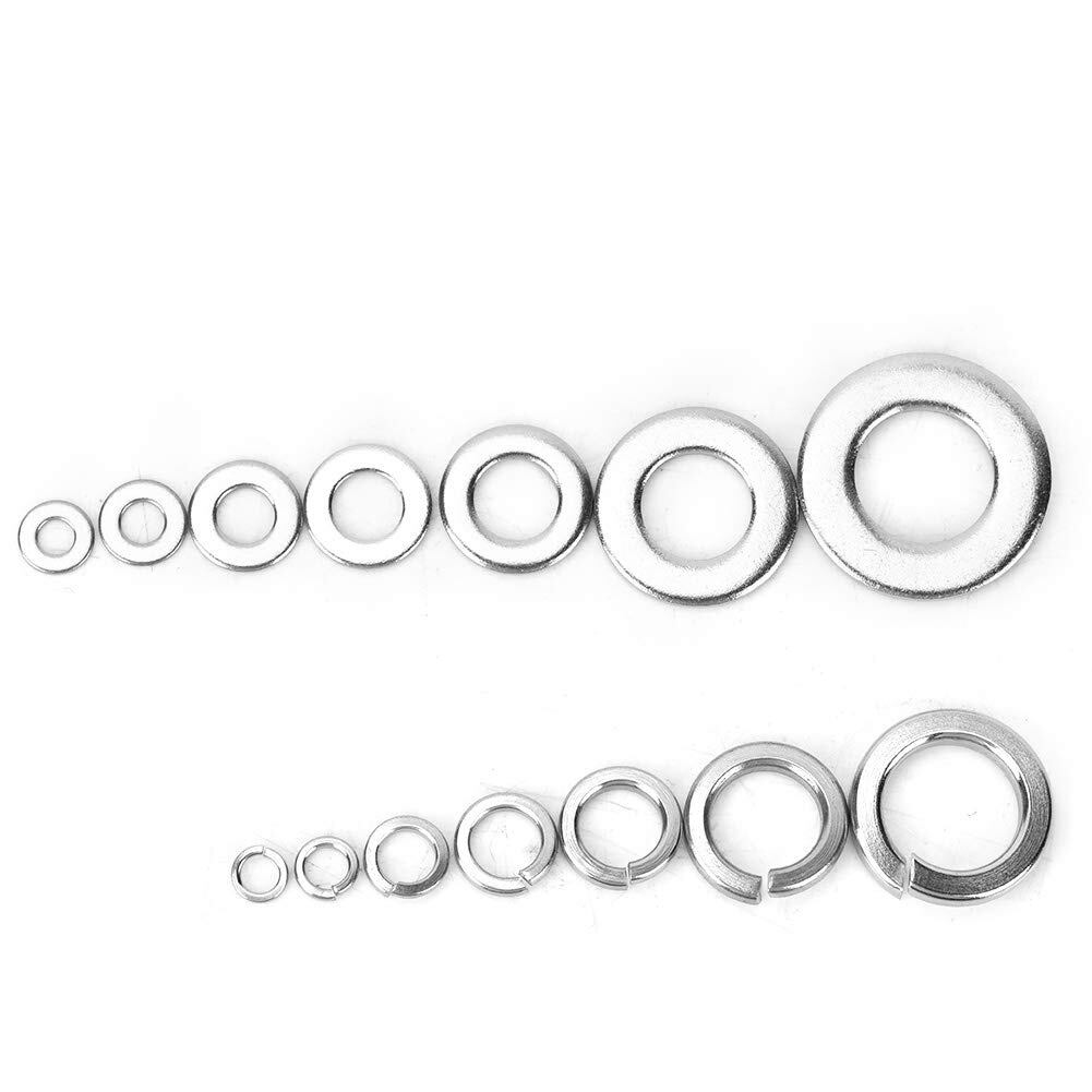 フラットワッシャー 260PCS ステンレス鋼製 M2.5 M3 M4 M5 M6 M8 M10 高硬度 導電性 平座金 ばね座金 サポート取付 機械組立 建築固定 電気設備 DIY修理 工具保管