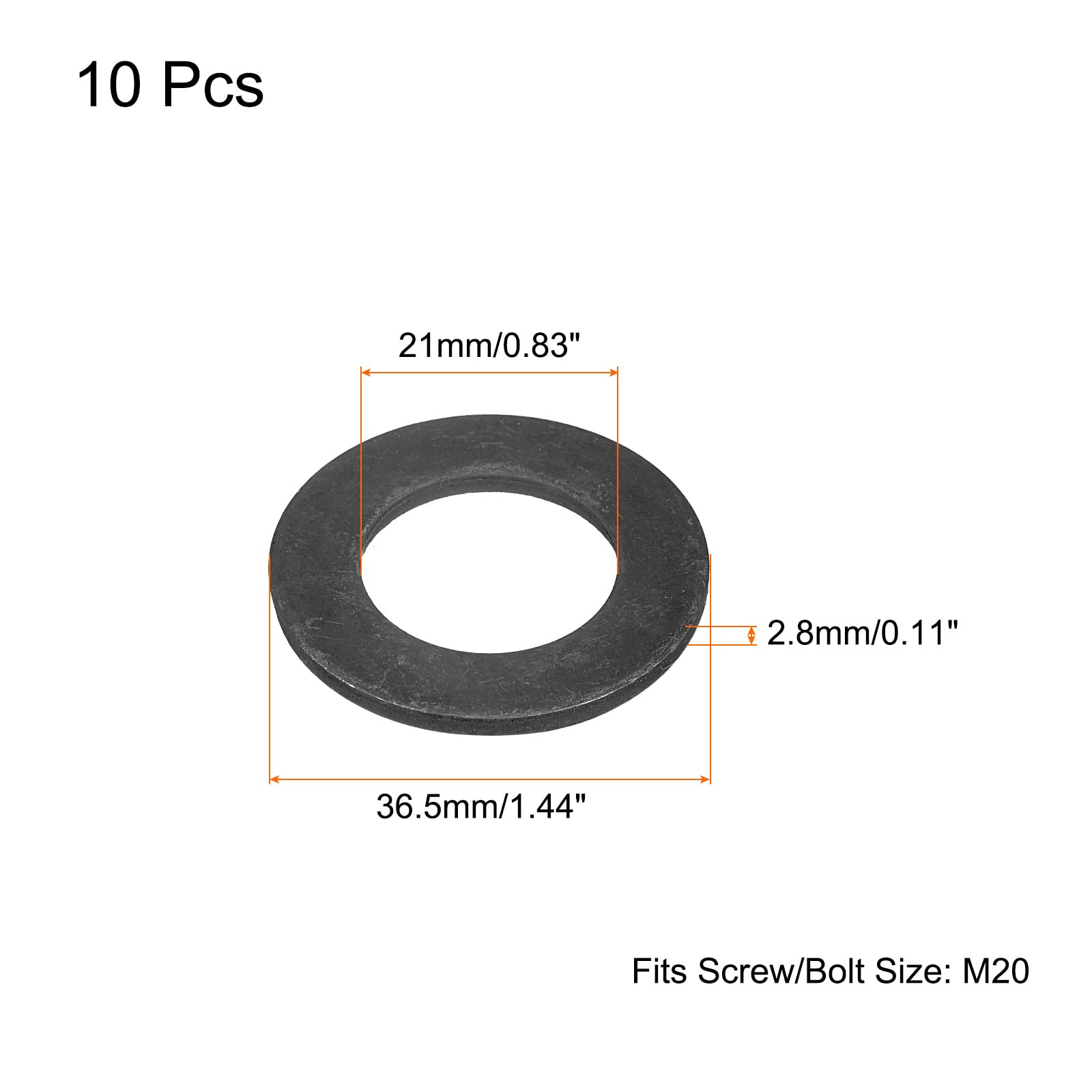 【特価在庫】uxcell M20 炭素鋼平座金 酸化された等級 8.8 合金鋼の留め具 機械産業用 自動車 10個 21 x 36.5 x 2.8mm ブラック