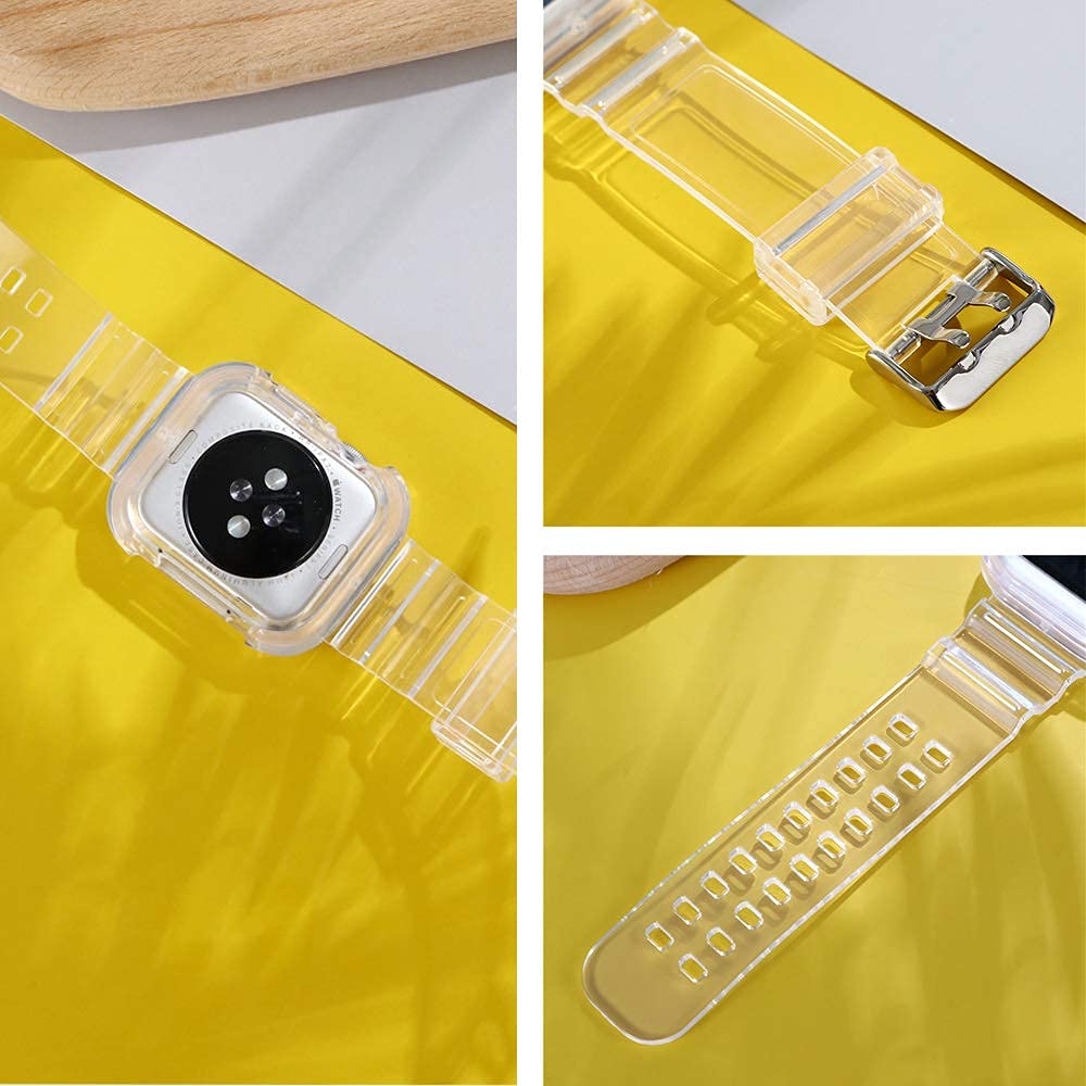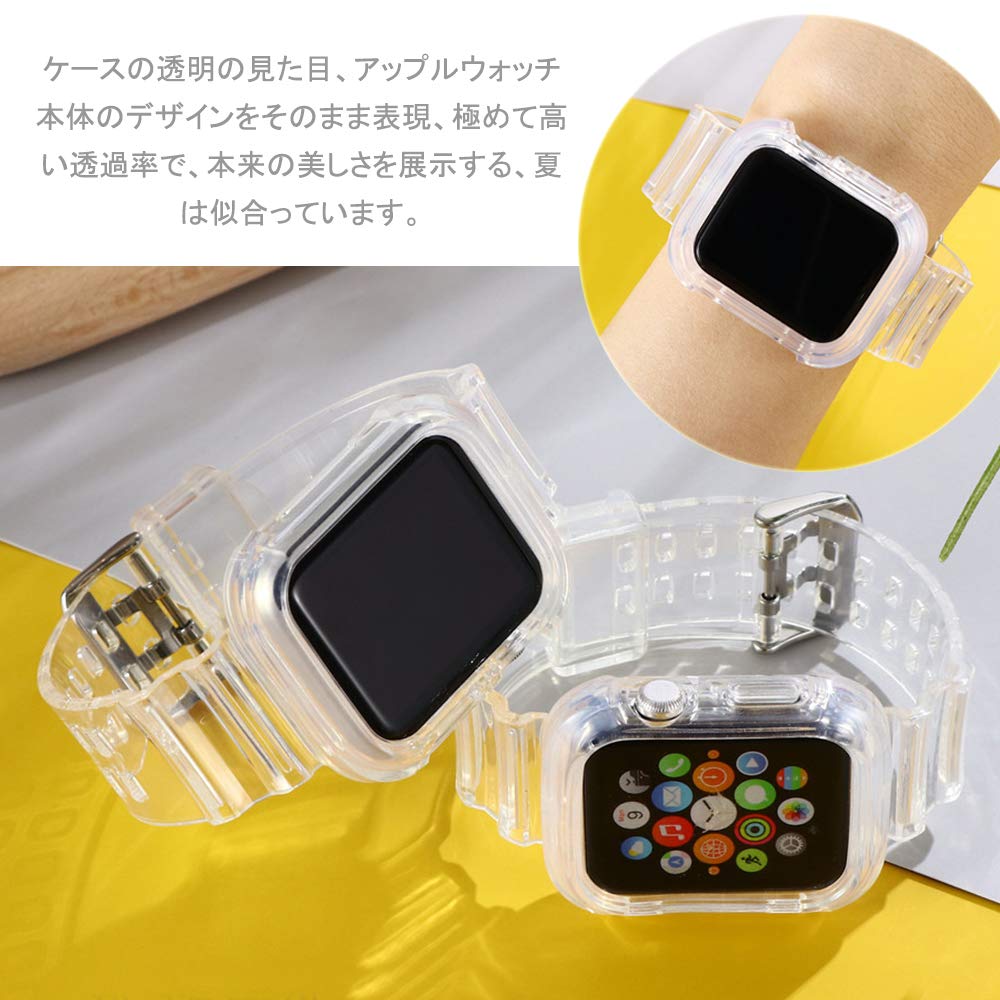 【数量限】対応Apple Watch 7/SE/6/5/4/3/2/1 透明バンド ケース アップルウォッチ7 41mm 38mm 42mm カバー シリコン 傷防止 防衝撃 TPU材質 全面保護ケース Apple Watch4 カバー(38mm/40mm/41mm) | GIGATERA