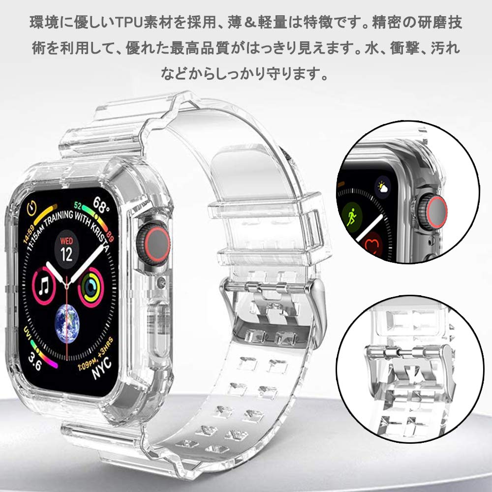対応Apple Watch 7/SE/6/5/4/3/2/1 透明バンド ケース アップルウォッチ7 41mm 38mm 42mm カバー シリコン 傷防止 防衝撃 TPU材質 全面保護ケース Apple Watch4 カバー(38mm/40mm/41mm)
