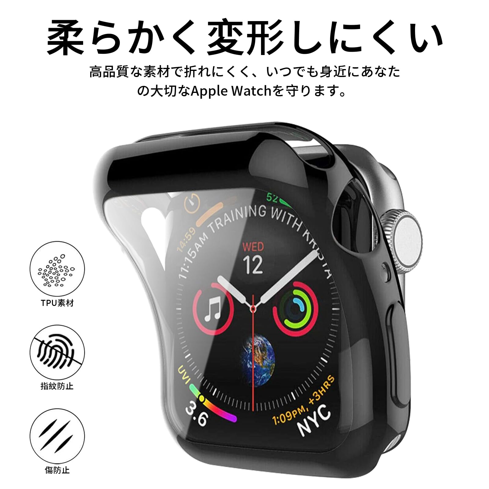 【数量限】YUGYUG 対応 Apple Watch ケース Series SE3/SE2/SE/6/5/4 Apple Watch カバー TPU素材 アップルウォッチ ケース 一体型 日本旭硝子材 二重構造 アップルウォッチ カバー 全面保護 超薄型 脱着簡単 耐衝撃(44mmブラック)