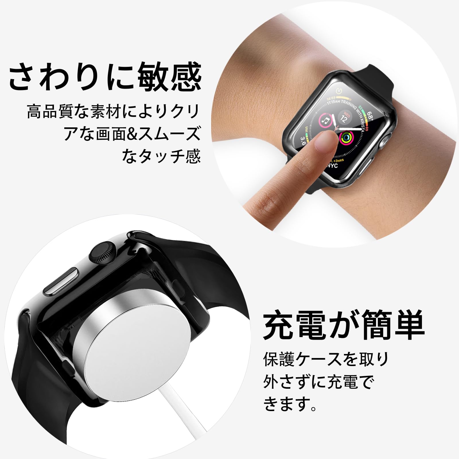 ★取り付けしやすい&充電便利:正確な穴開け設計で、ケースを装着したままで充電可能です。快適にすべての腕時計機能を利して、直接にApple Watchにケースを取り付けたり、外したりする必要がありません。バンドを外す手間もかからないです。※取り外しの際は画面を強く押さえないようご注意ください。