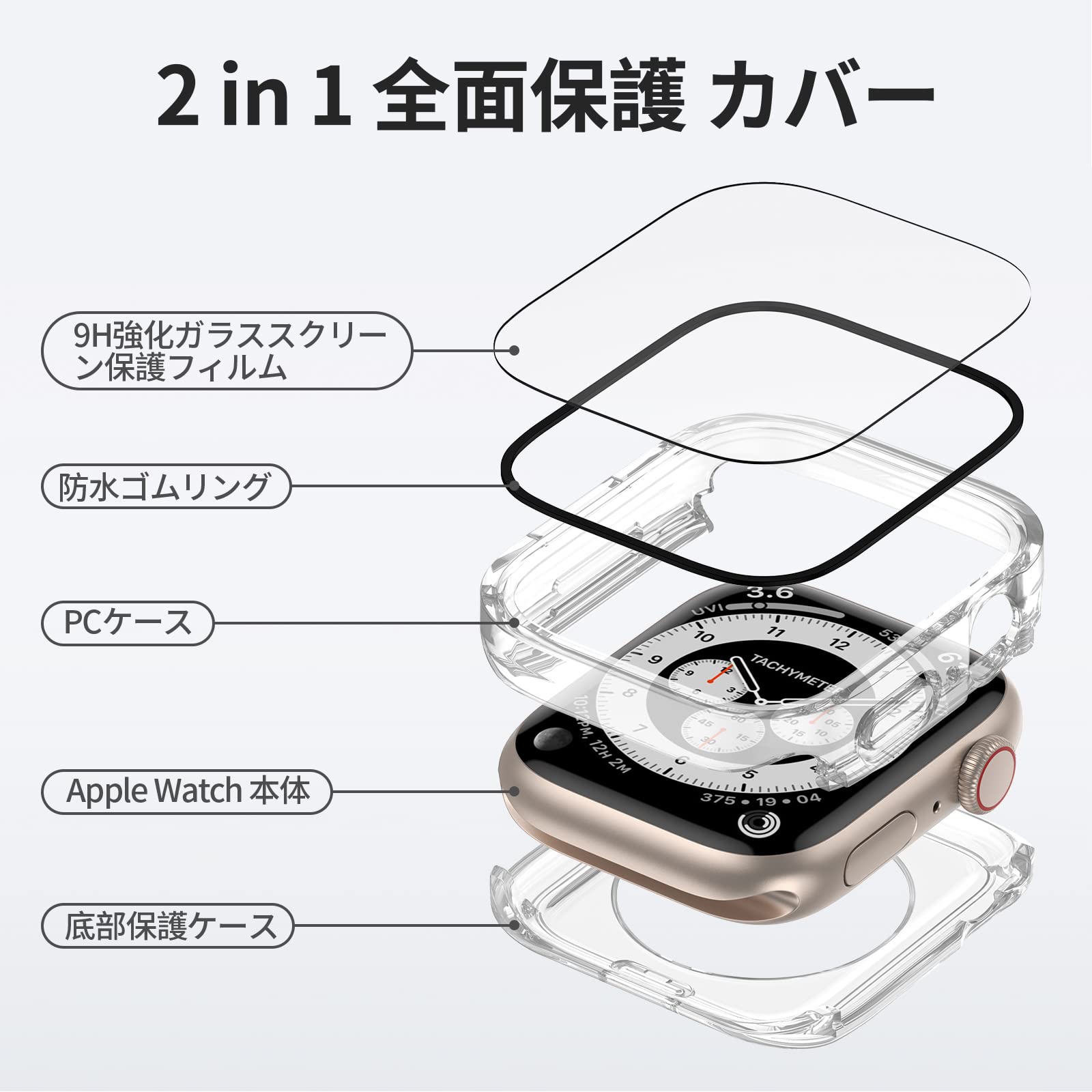 【フルカバー保護】Kawoco アップルウォッチ 防水 カバー Apple Watch SE Series 6 5 4 対応 44mm ケース 2 in 1 前後の保護 二重構造 耐衝撃 iWatch 一体型 ケース 44mm クリア