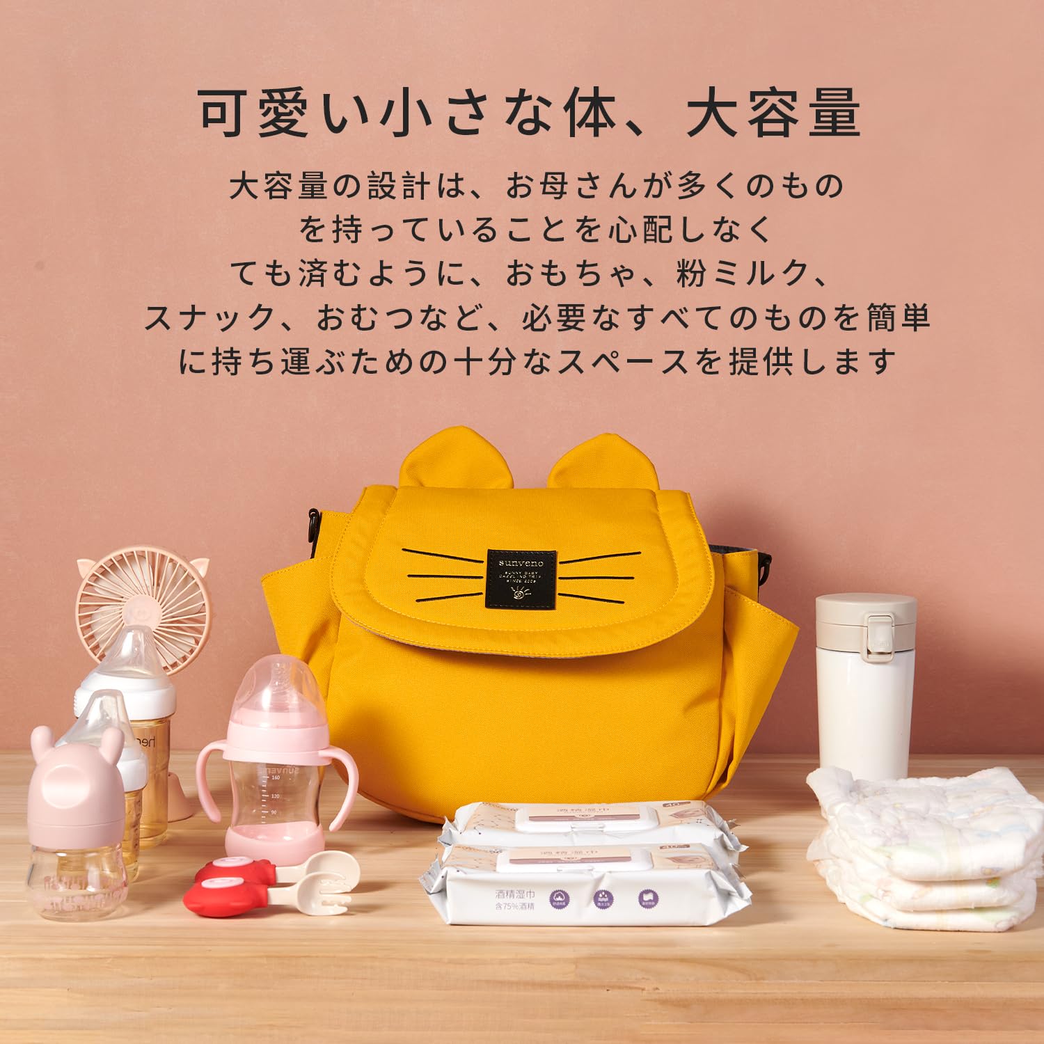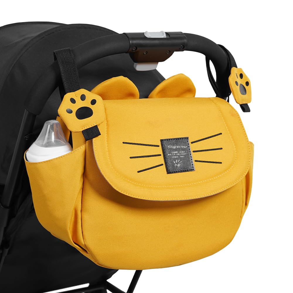 [Sunveno] ベビーカー用の収納バッグ、ストローラーオーガナイザー、ママバッグ、ベビーカーに取り付け可能、赤ちゃんの必需品を持ち運ぶのに最適 (Yellow)