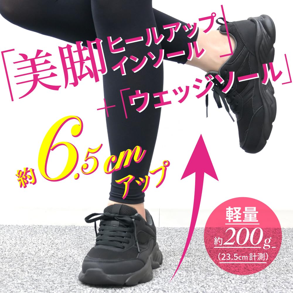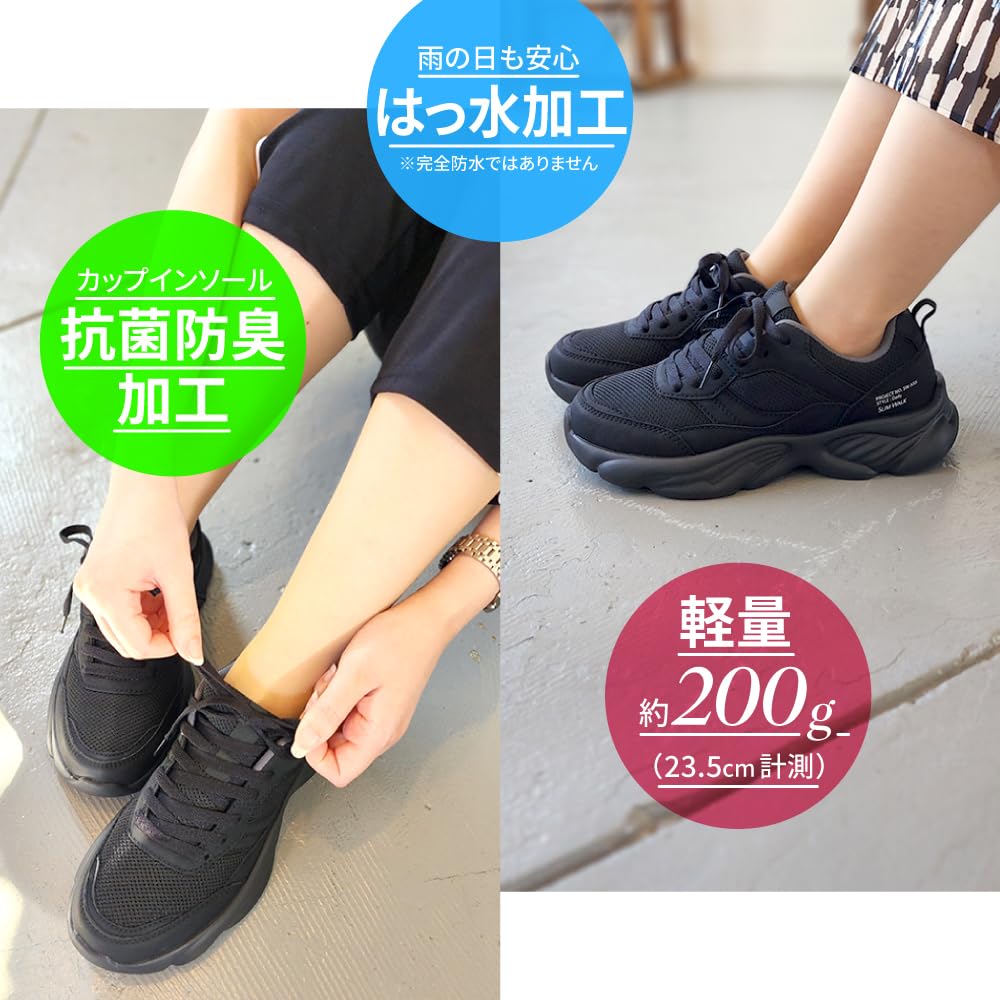 [スリムウォーク] スニーカー レディース 厚底5.5cm ウォーキング ランニング ダッドスニーカー 抗菌 防臭 美脚インソール 通気性 黒 グレー ベージュ 22.5 23.0 23.5 24.0 24.5