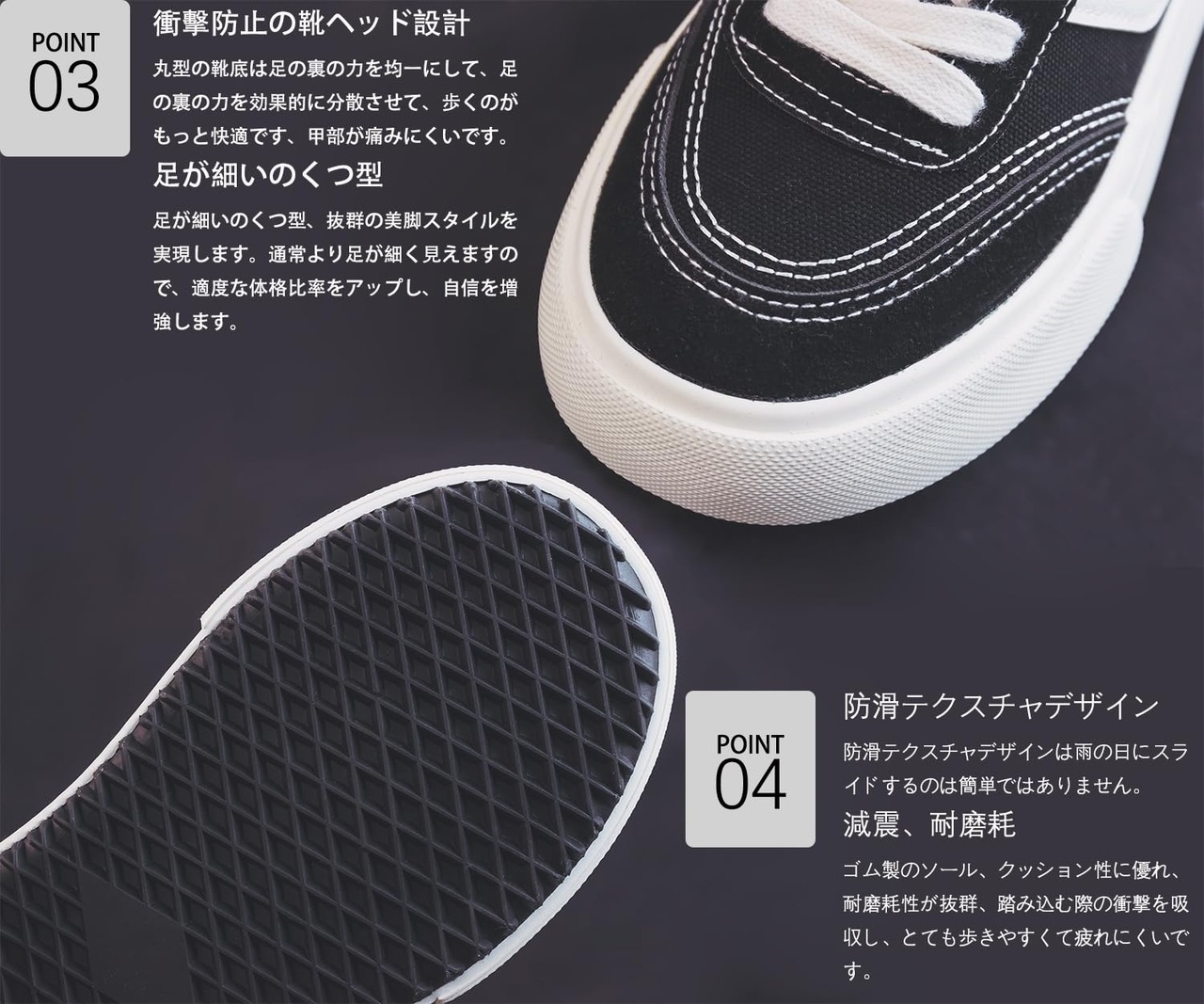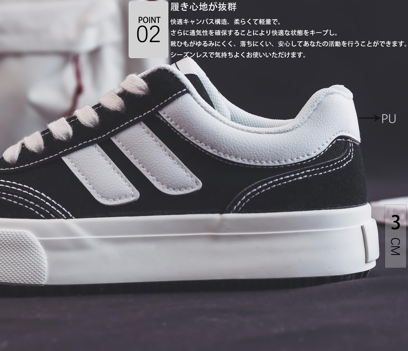[Meinax] シューズ レディース スニーカー 靴 キャンバス ランニングシューズ 黒 厚底 スポーツシューズ 運動靴 ダッドスニーカー ウォーキングシューズ レースアップ カジュアル 通気性 通勤 通学 ローカット