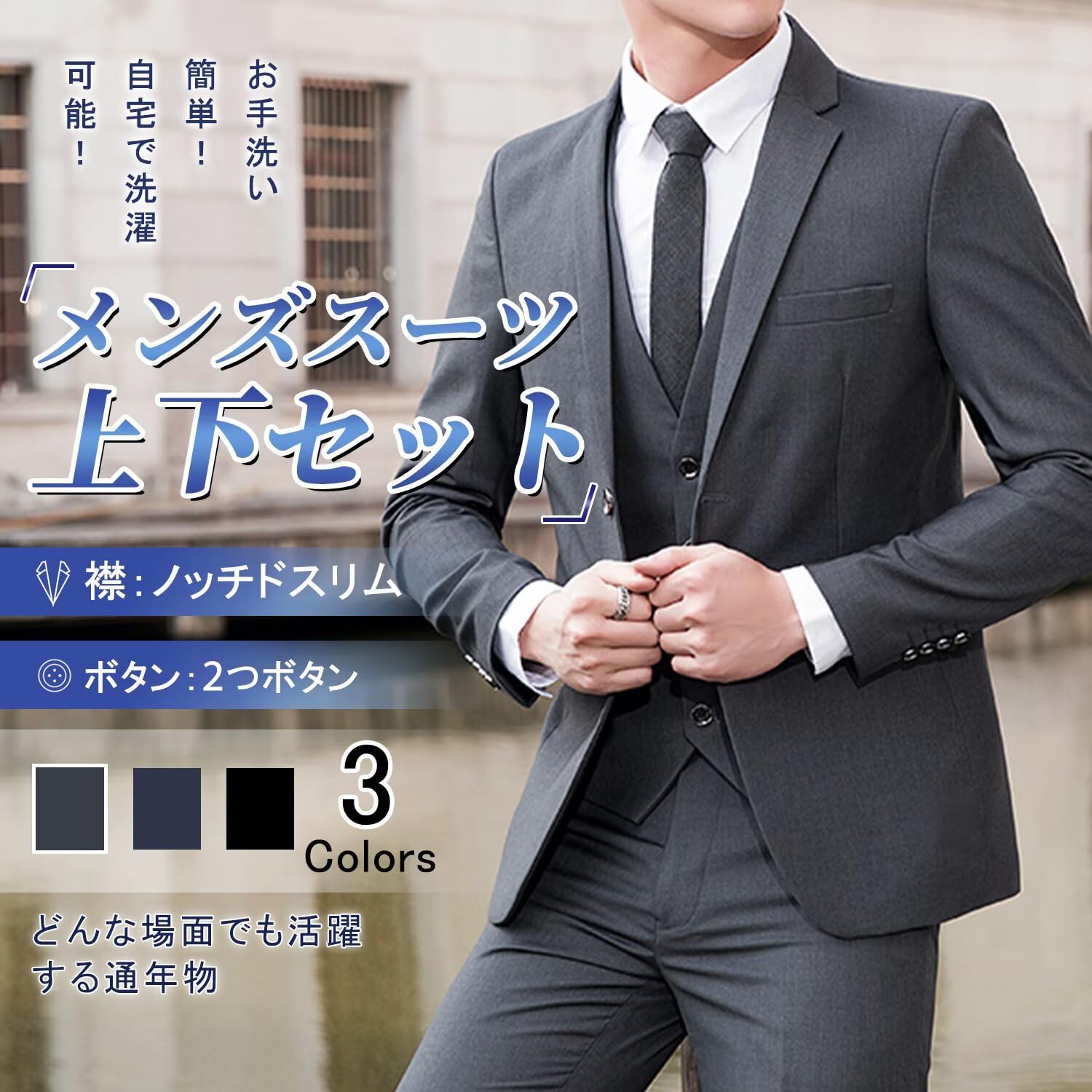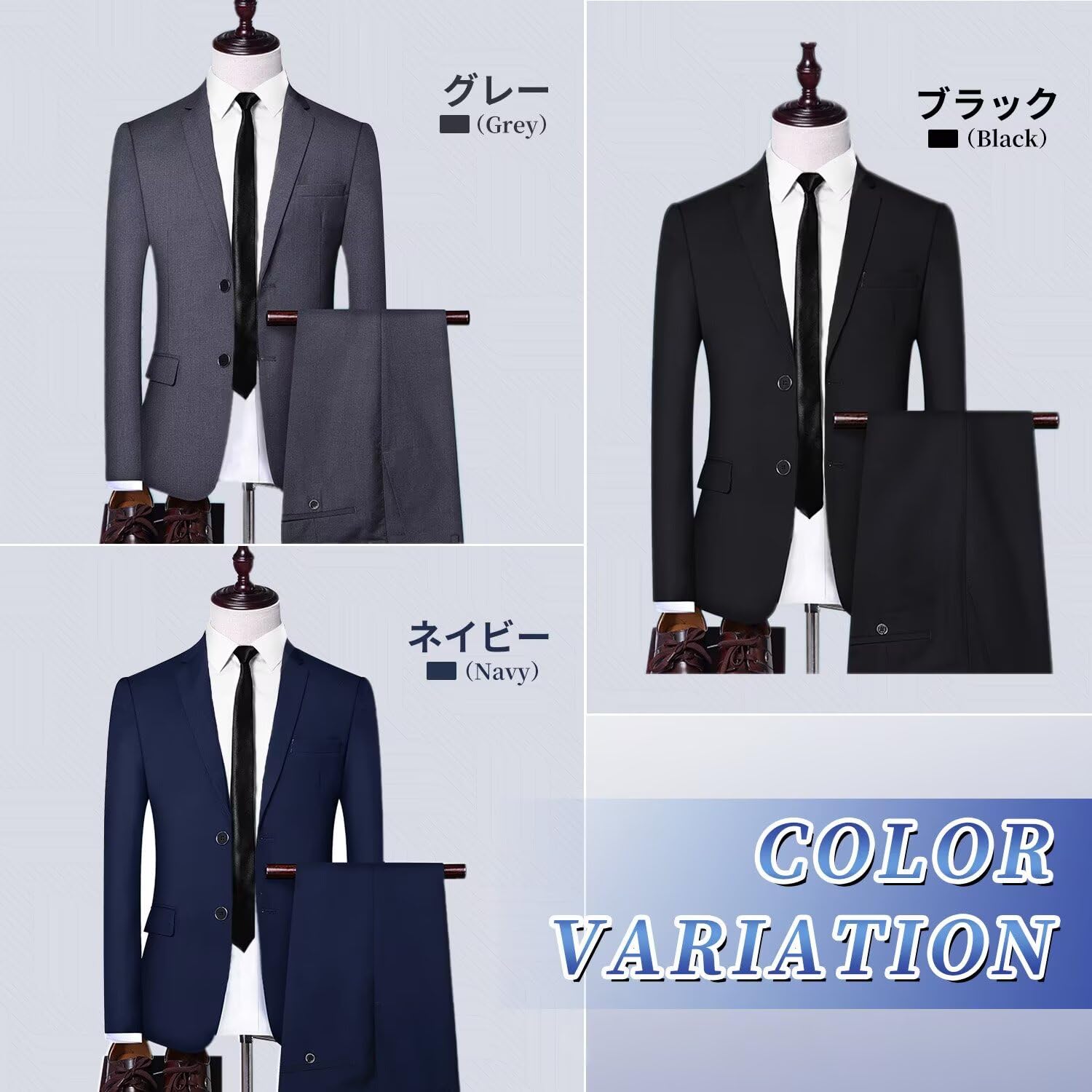 [YAYOKYA] スーツ メンズ 上下セット 2点Set ビジネスすーつ スリムタイプ セットアップ 2つボタン 就職フォーマル 礼服 結婚式 無地 Mens Suits オールシーズン対応