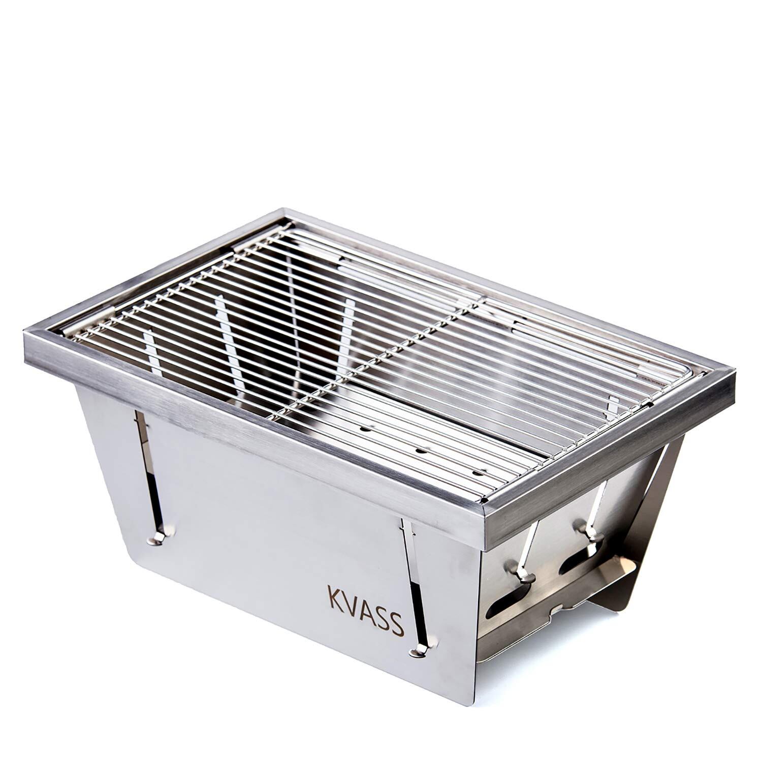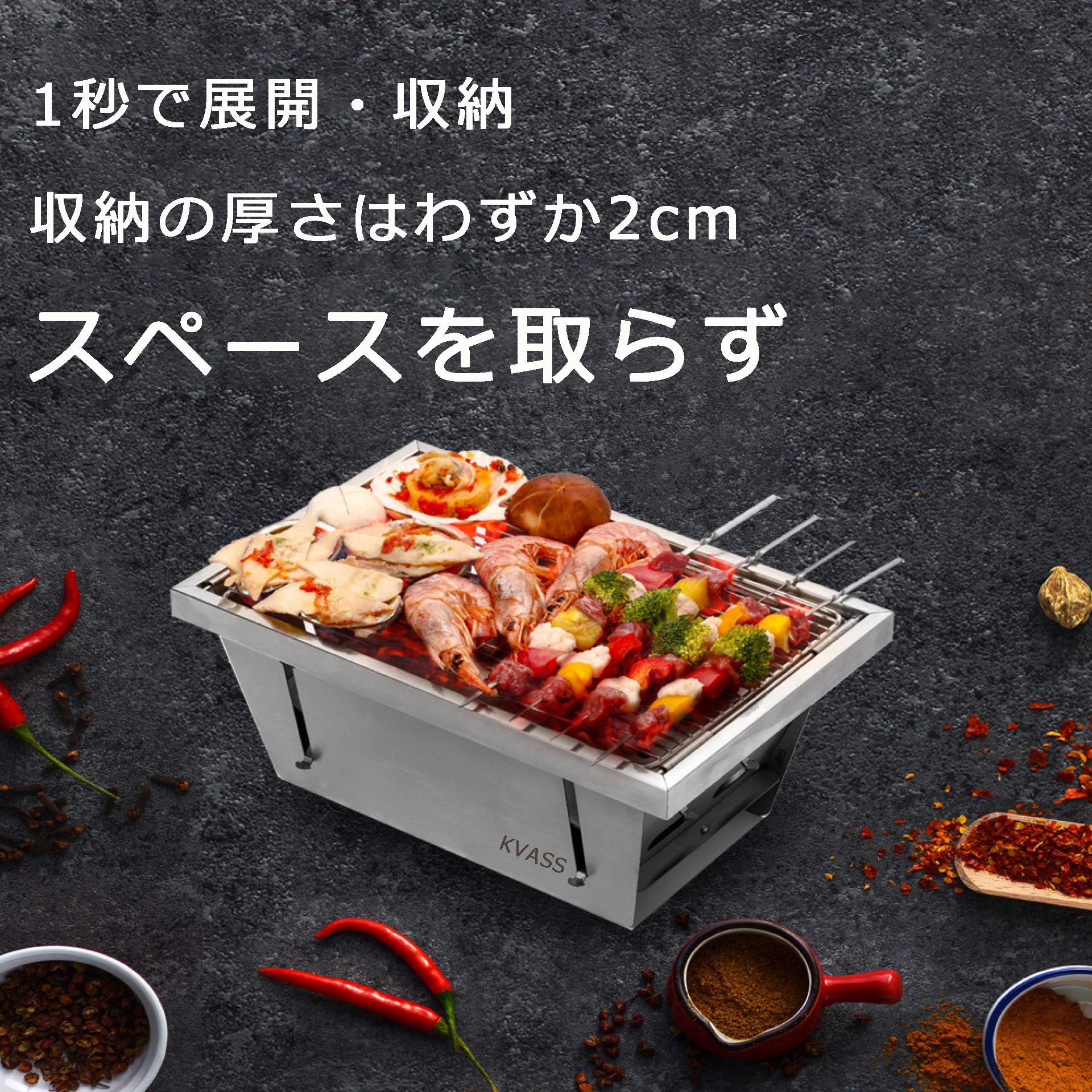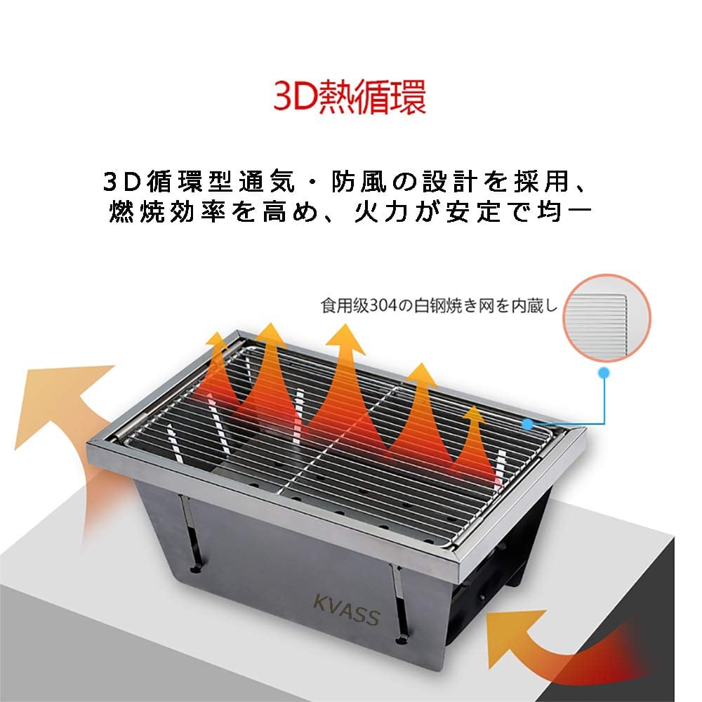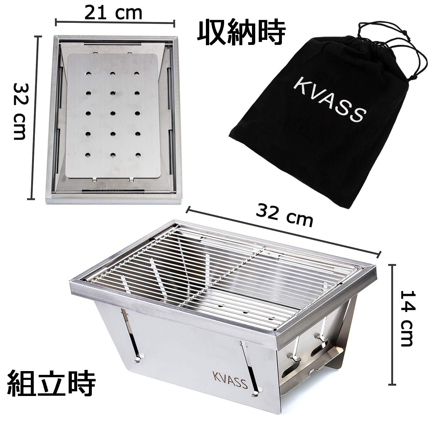 KVASS バーベキューコンロ コンパクト 焚き火台 キャンプ用品 卓上コンロ 折りたたみコンロ ミニバーベキューコンロ BBQグリル 1台3役 ステンレス鋼