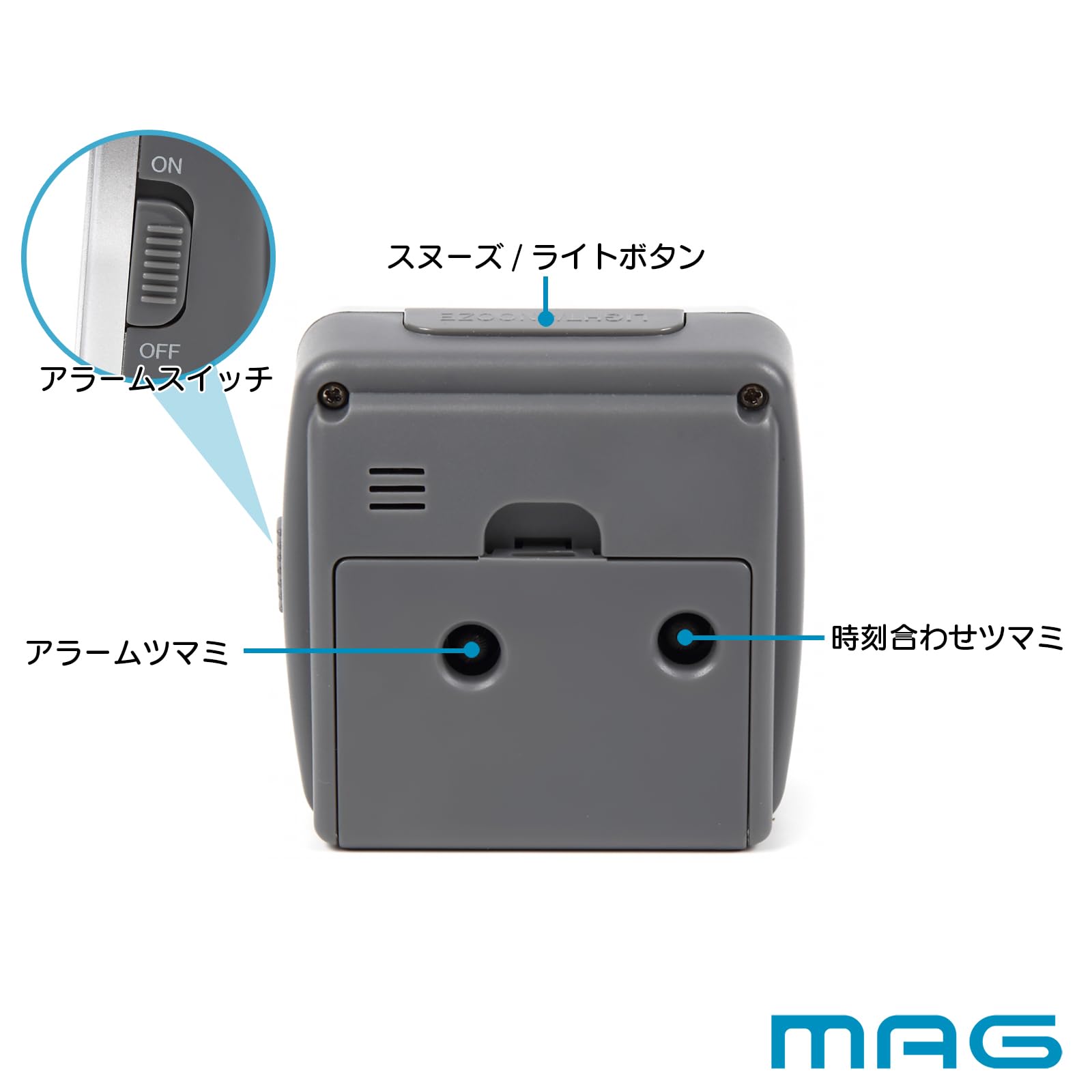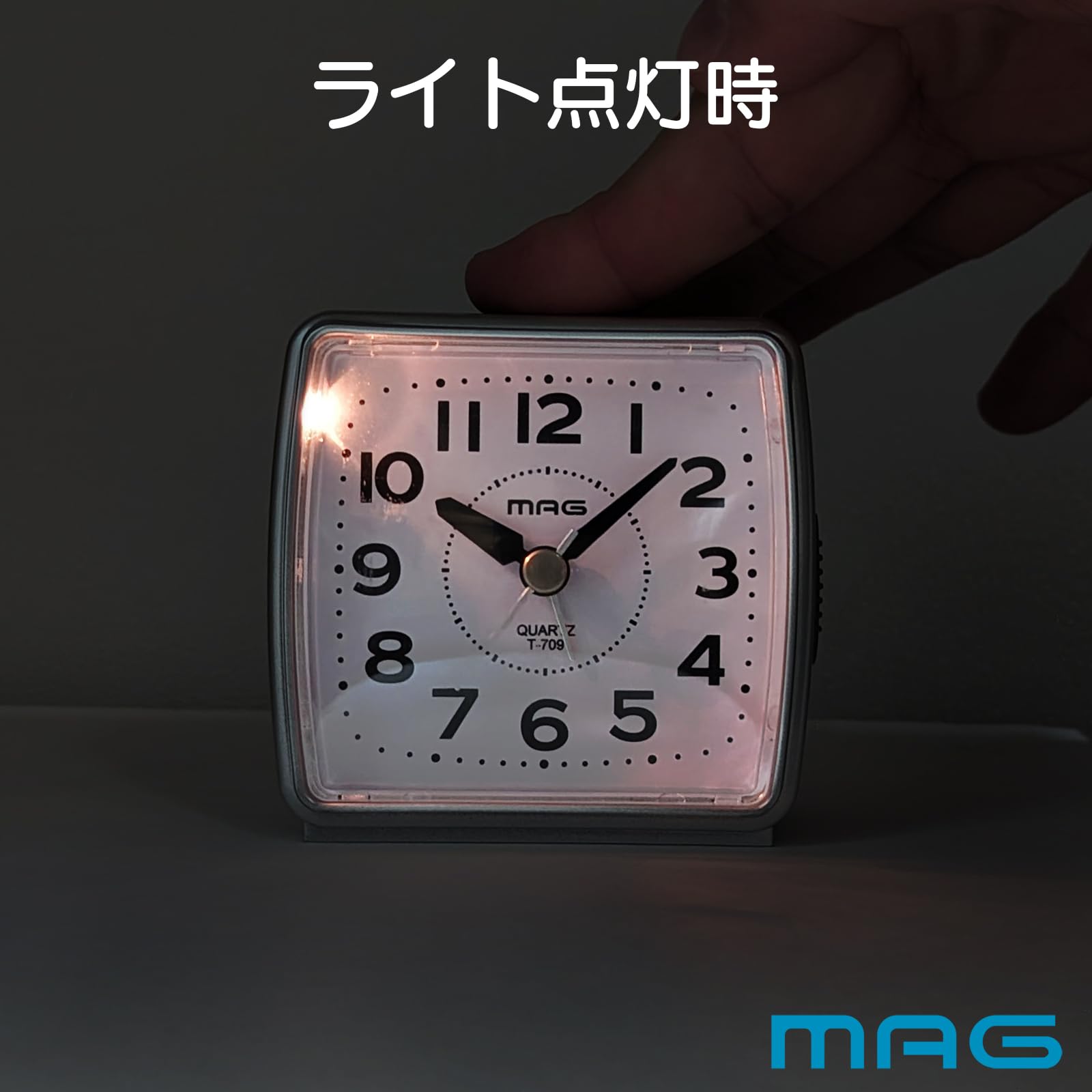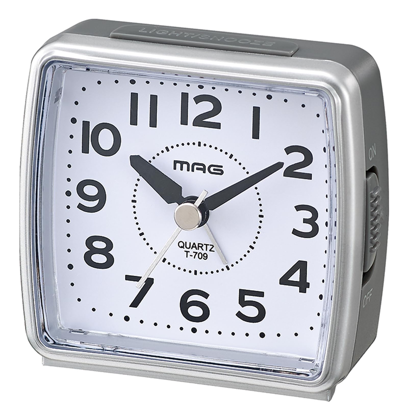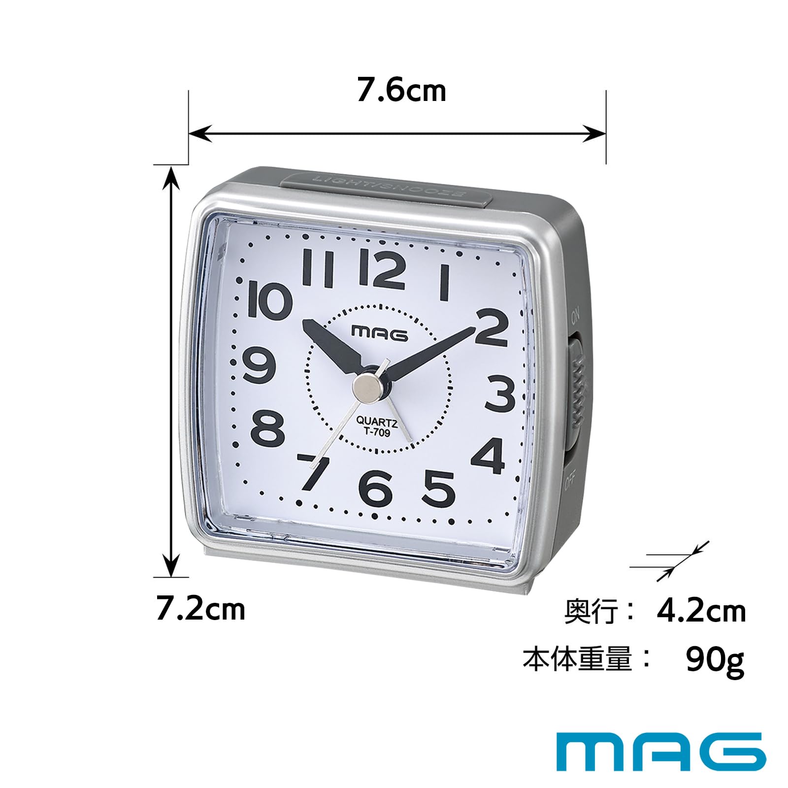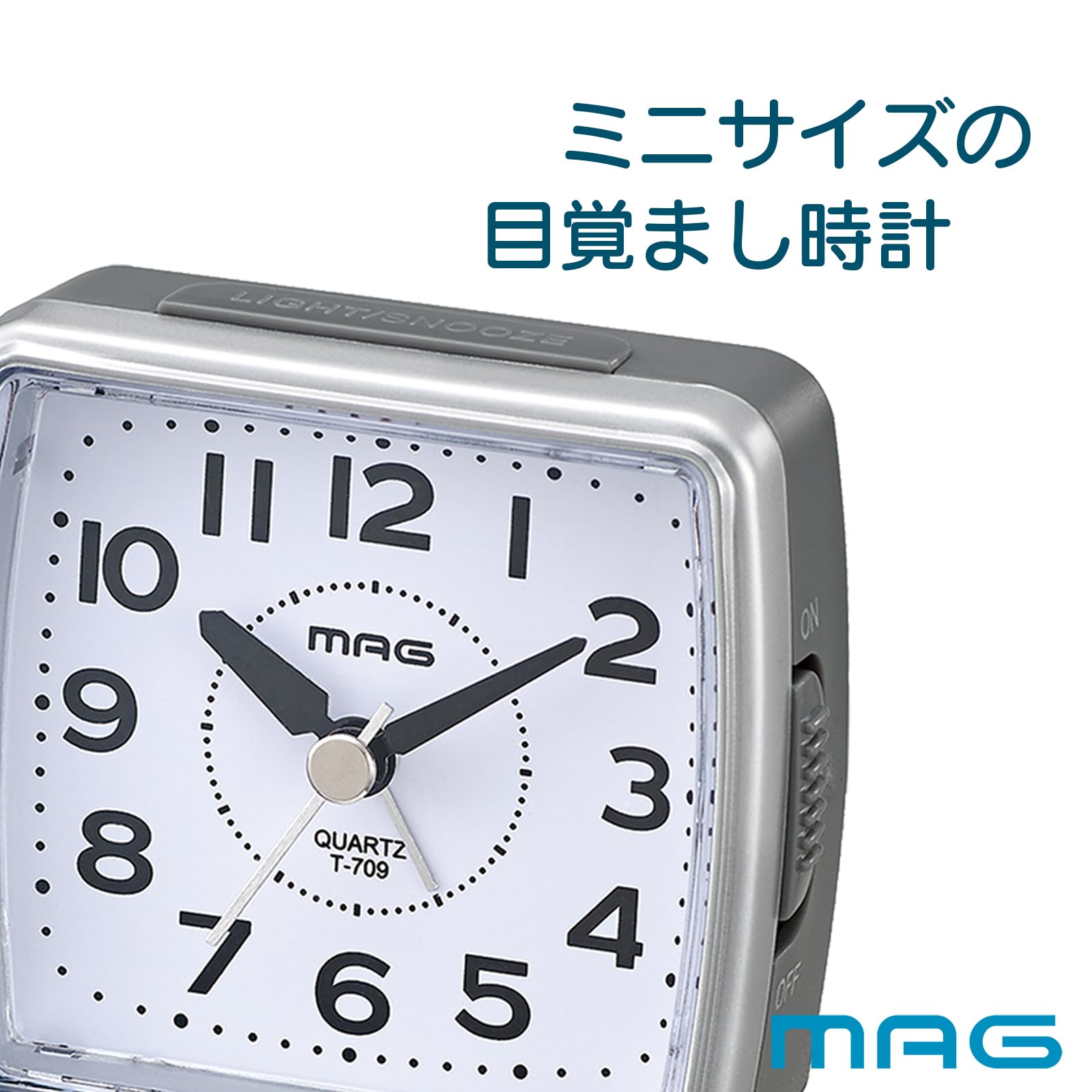 【数量限】MAG(マグ) 目覚まし時計 置き時計 小型 小さい アナログ 静音 連続秒針 電子音 アラーム スヌーズ ライト シルバー 小次郎 T-709 SM ノア精密