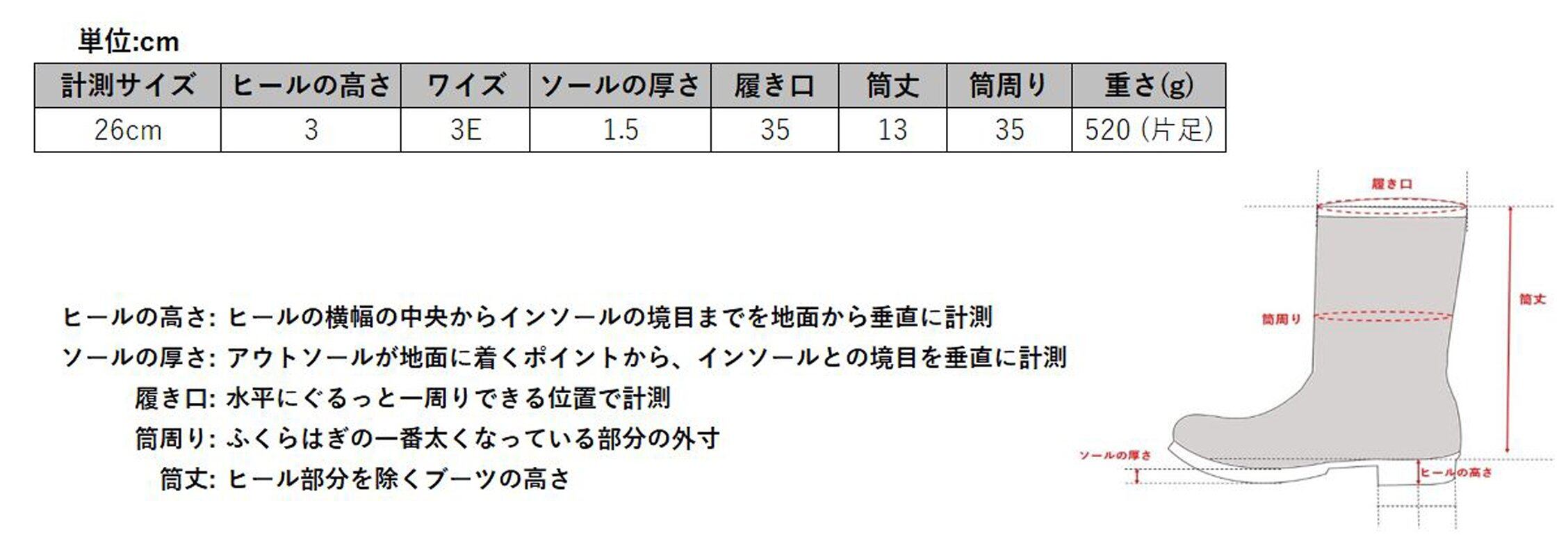 履き口:35cm/筒丈:13cm(計測サイズ26cm)