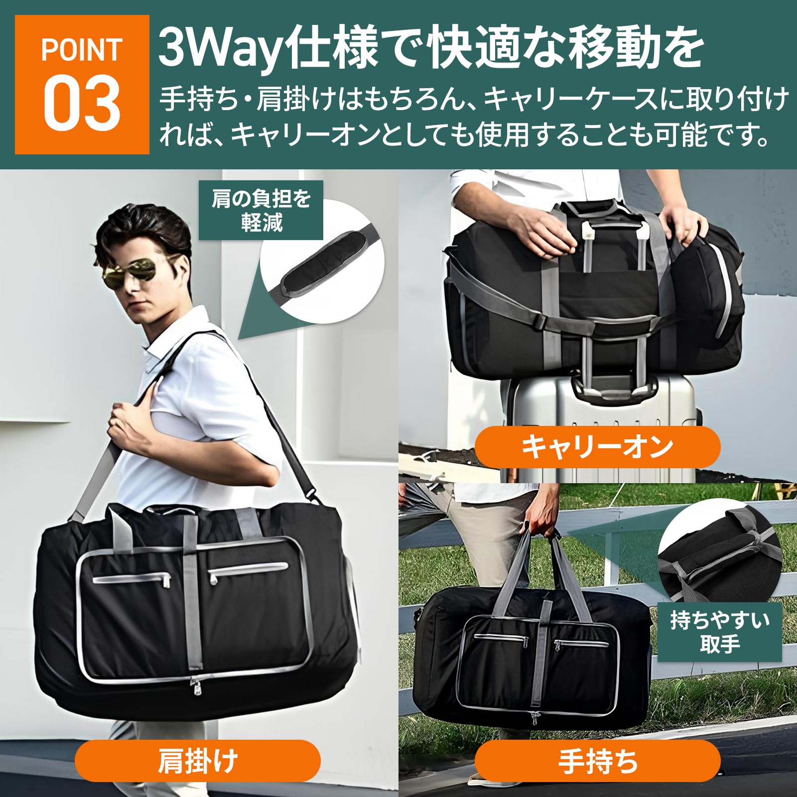 キャリーオン対応:スーツケースの取っ手に通せるベルト付きで移動が快適。
