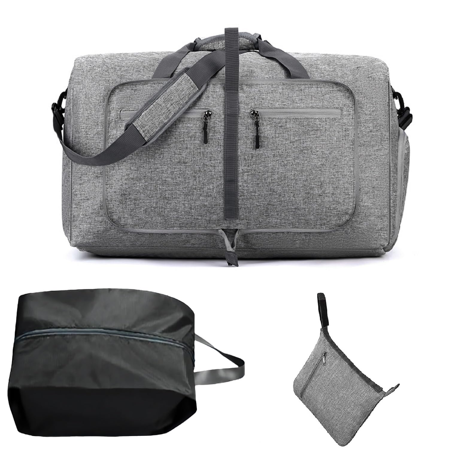 HINACO 旅行バッグ ジム用 トラベルバッグ 折りたたみ ボストンバッグ ダッフルバッグ キャリーオンバッグ 大容量 旅行カバン 65L 防水 シューズバッグ付き ロゴなし(グレー)