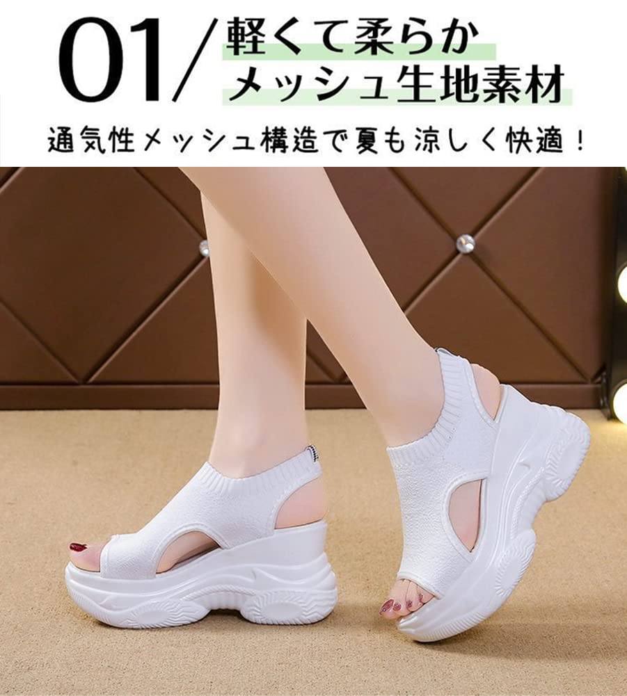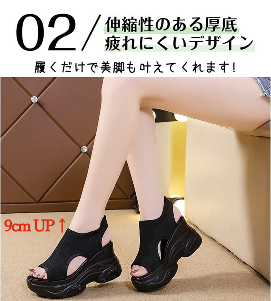 [MaxWant] サンダル 厚底 9cm身長アップ レディース メッシュ 軽量 夏 歩きやすい 通気性 美脚 ファッション カジュアル