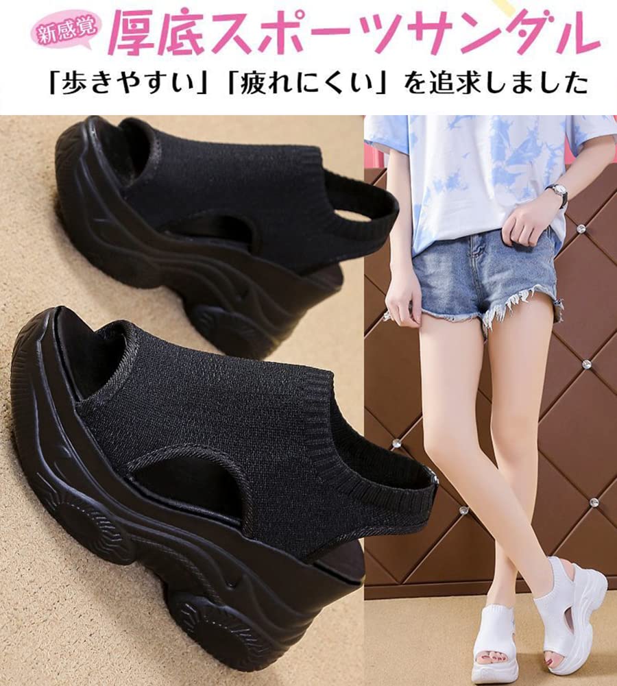【厚底でスタイルアップ】約9cmヒールで足長効果UP !足元に程よいボリューム感を演出できる厚底ニットスポーツサンダルが登場しました。