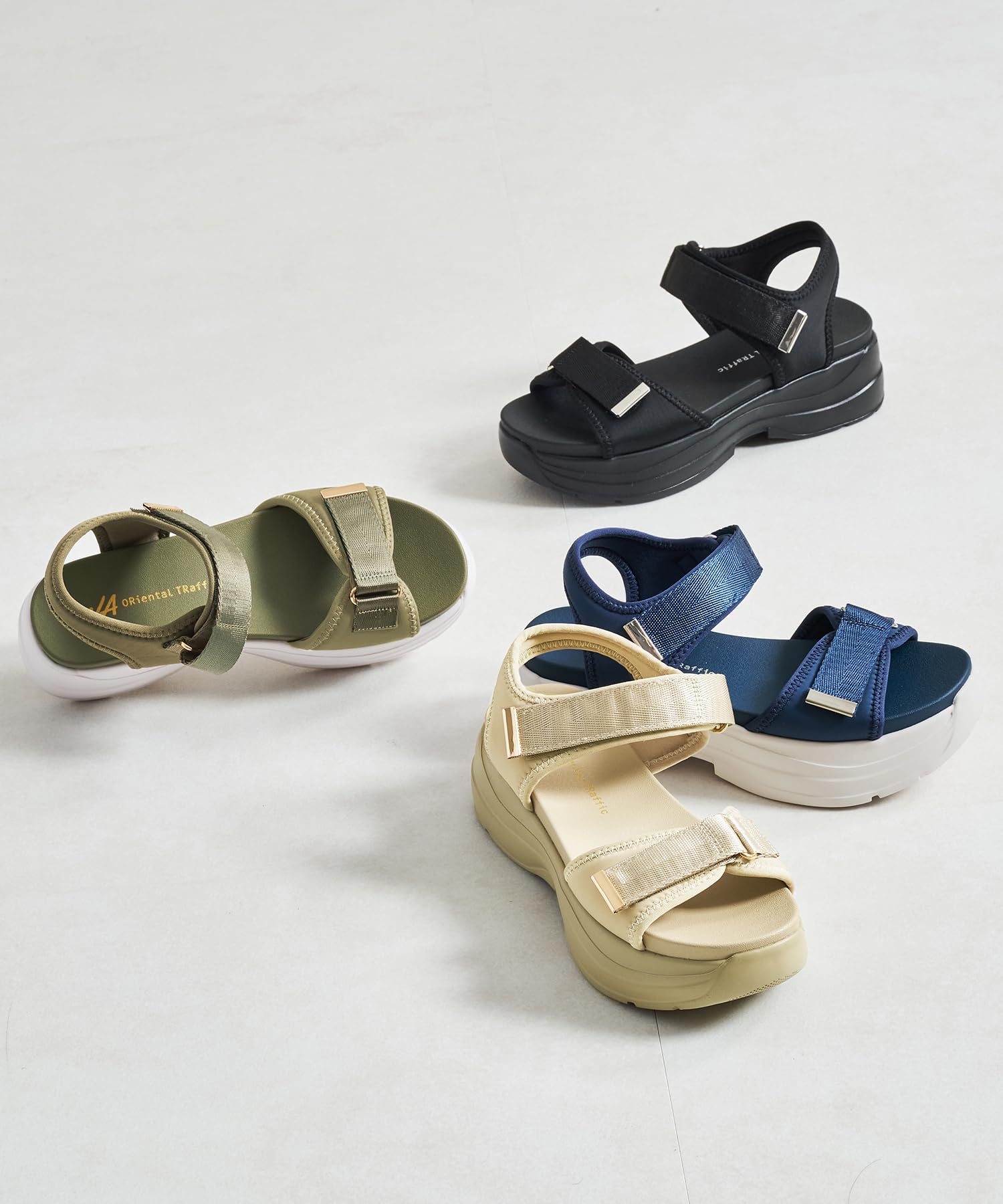 [オリエンタルトラフィック] サンダル スポーツサンダル レディース 厚底 大きいサイズ 小さいサイズ 歩きやすい 軽量 楽ちん ダブルベルト 柔らかい 人気 レンド 再入荷 追加 ベルクロ 42207