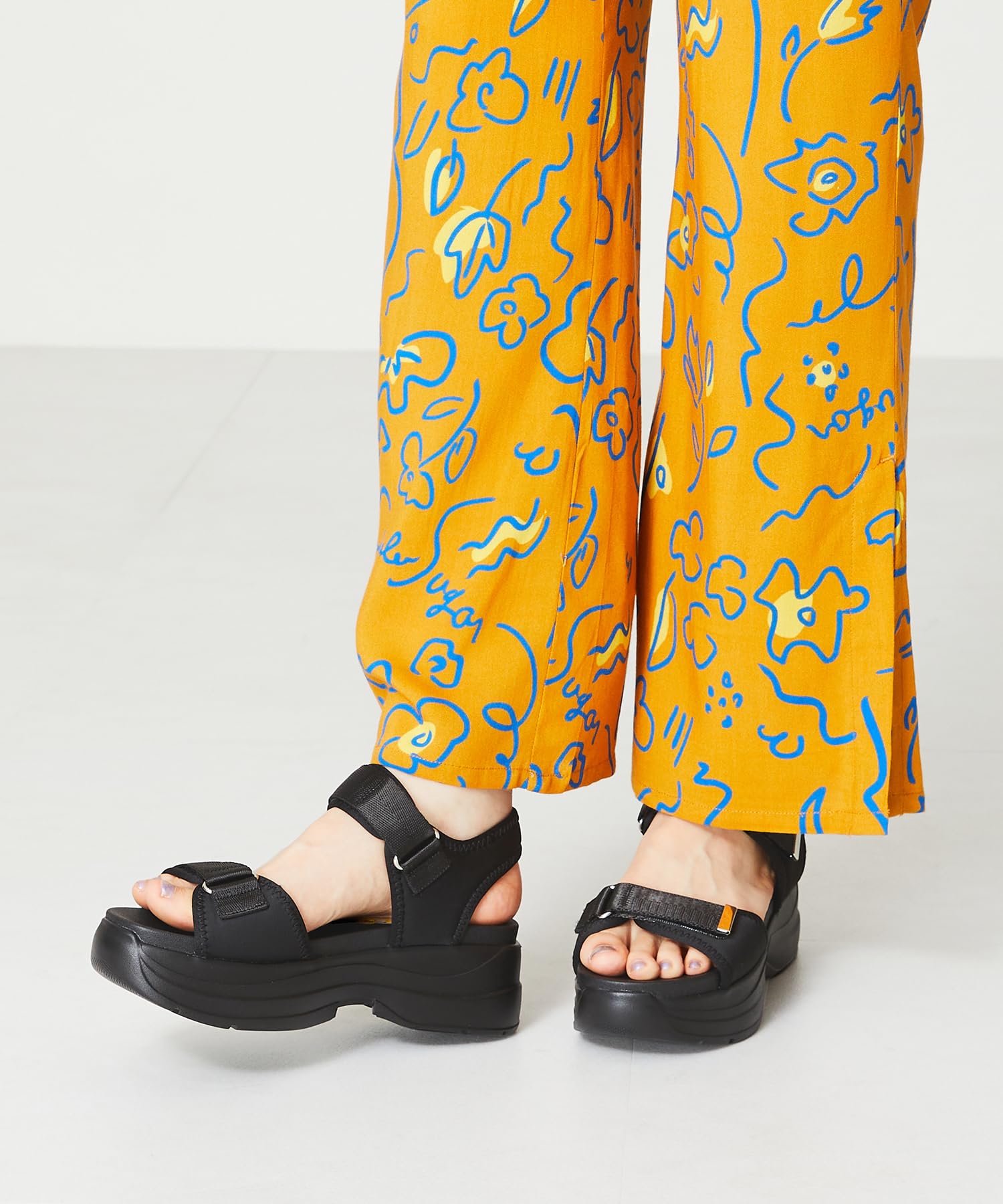 旬のボリュームのある厚底ヒールはスタイルアップを叶えてくれるだけでなく、見た目よりずっと軽量なのでたくさん歩いても疲れにくい