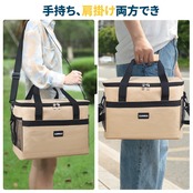 ?【高品質&折りたたみ収納可能】仕上がりは非常に繊細で、上質なオックスフォード生地を使用しています。表地は撥水を防ぐオックスフォード、裏地が防水できるアルミシート裏に氷を入れて溶けても外に漏れない構造です。頑丈で長い利用できます。コンパクトに折りたたんで収納可能なので、持ち運びやすいし、省スペース化も実現できます。ハンドルとショルダーベルトの両方が付いていて、手提げでも、肩掛けでも可能です。