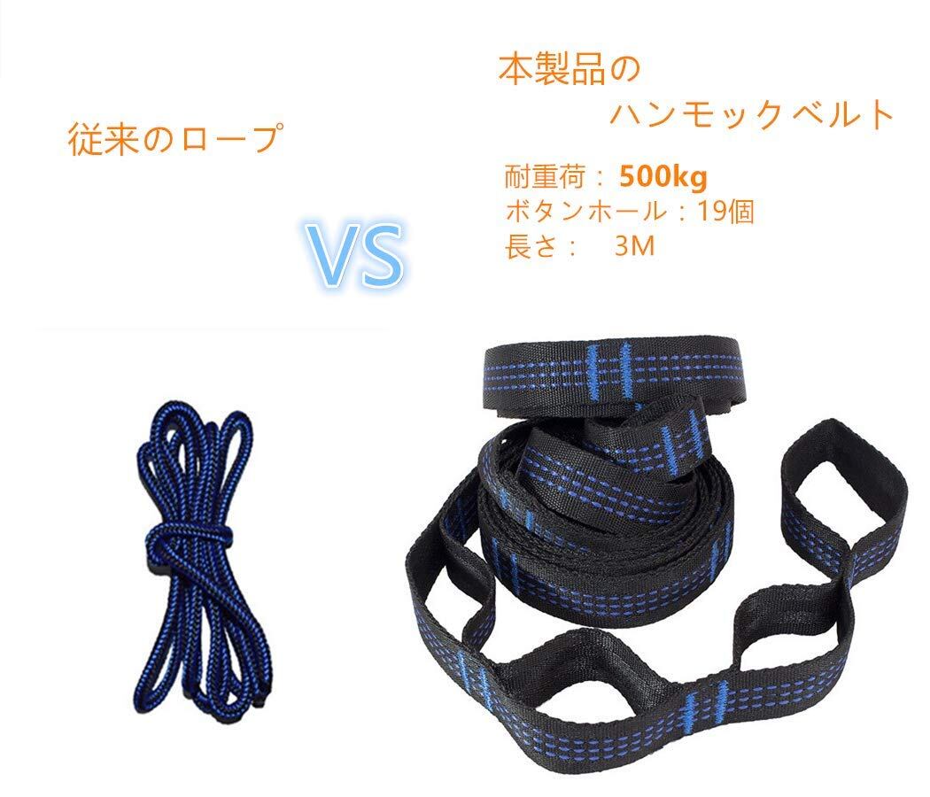 HOMEME ハンモックベルト ハンモックストラップ 2本セット 長さ300cm ノード19個 耐荷重量500kg キャンプ アウトドア用 専用収納バッグ付き