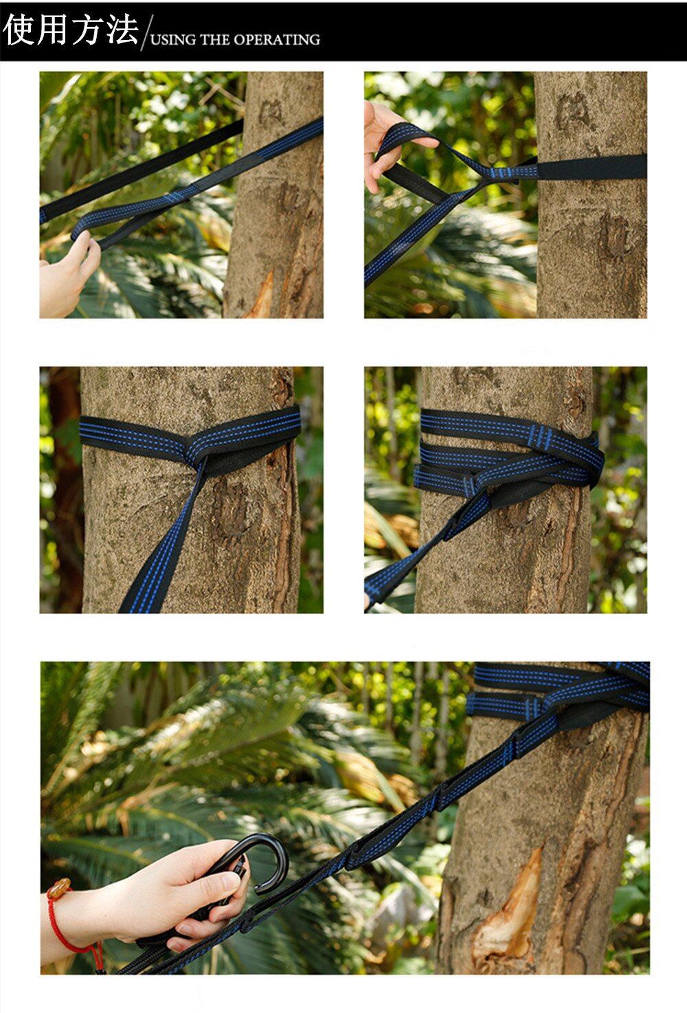 【高強度】高強度ポリエステルシルクで作られたハンモックベルトです。ロープに比較し、迅速に結び目を作ることができます。
