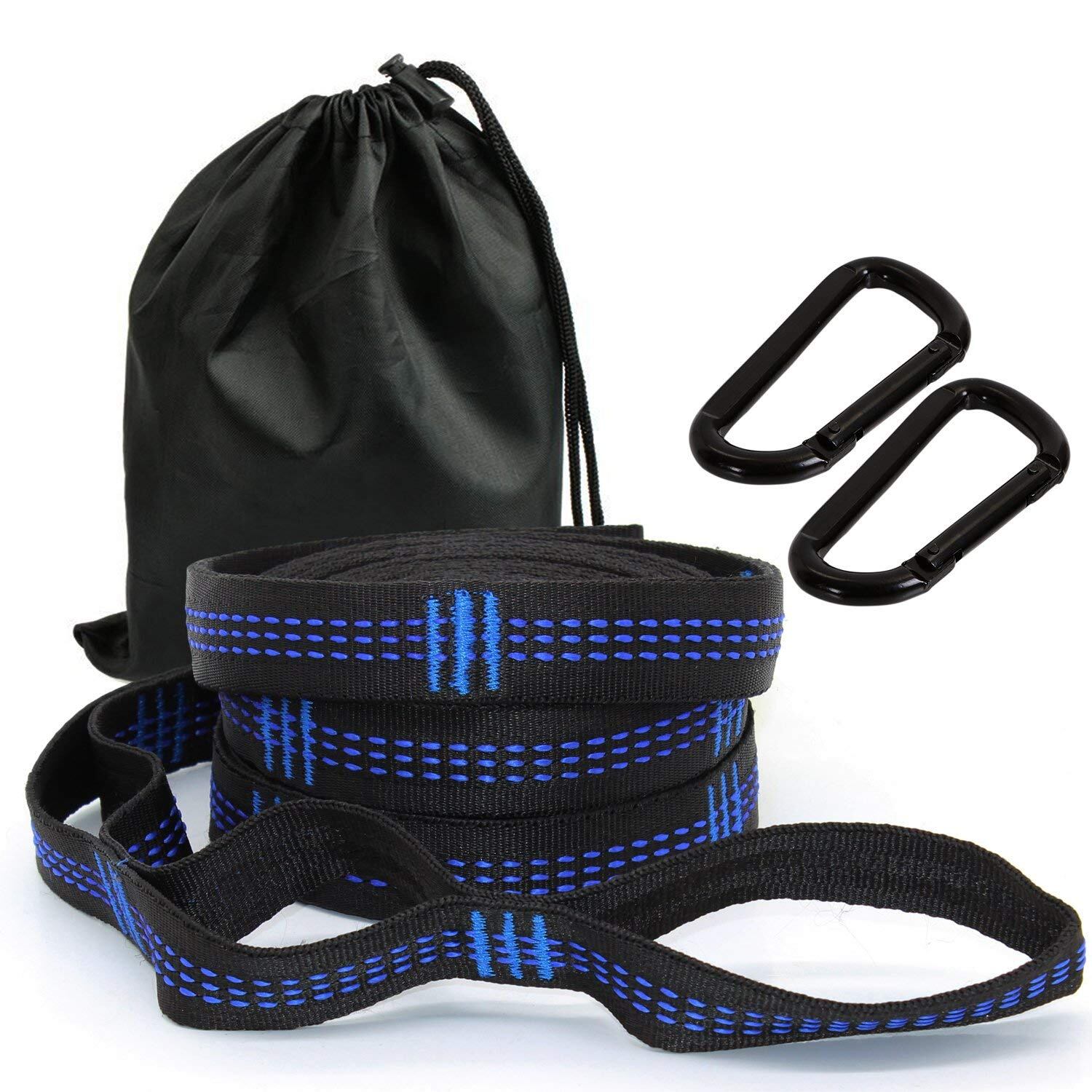 【特価】HOMEME ハンモックベルト ハンモックストラップ 2本セット 長さ300cm ノード19個 耐荷重量500kg キャンプ アウトドア用 専用収納バッグ付き