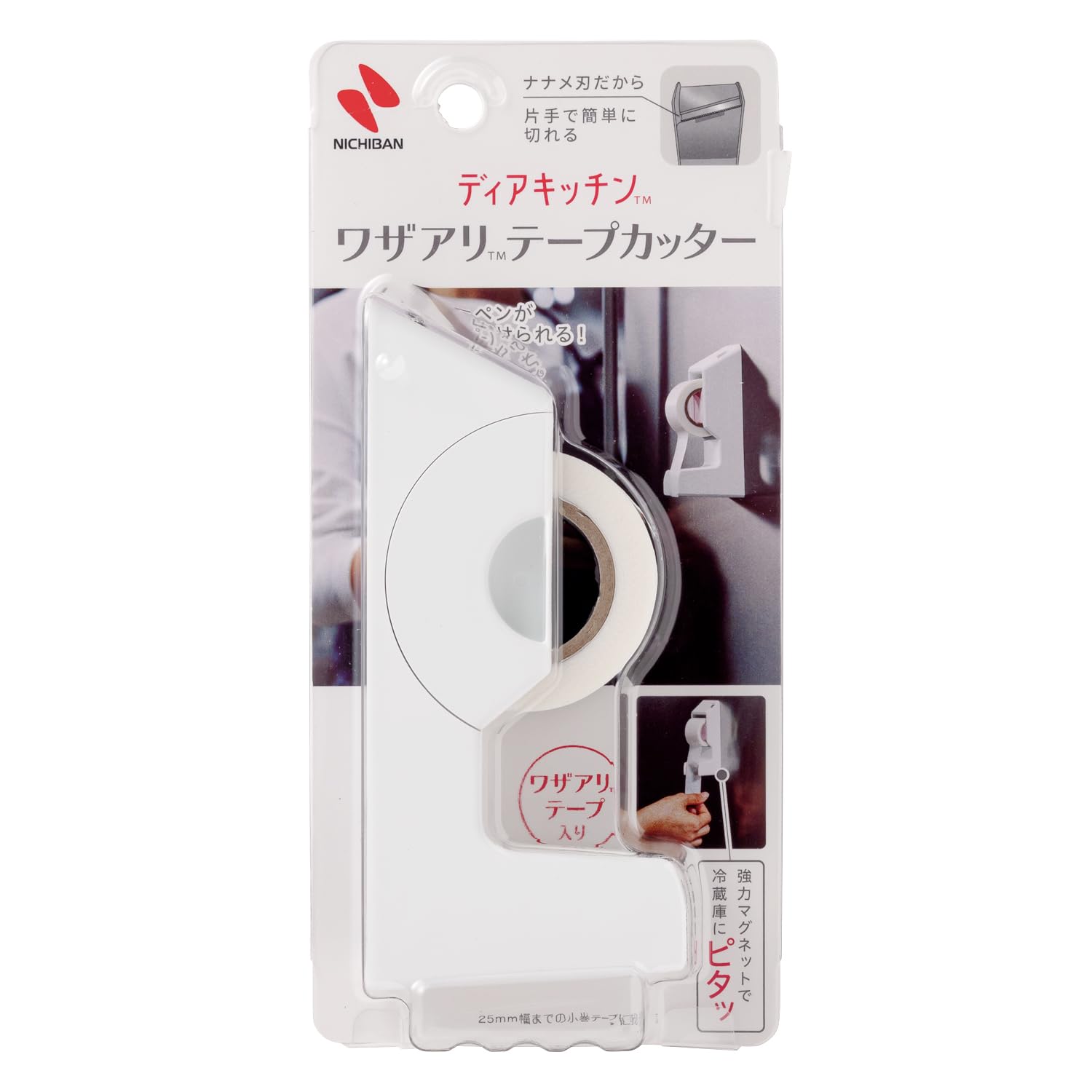 ニチバン ディアキッチン ワザアリテープカッター ホワイト テープ付き DK-TC5|作り置き 冷凍 保存 封止め マグネット付 書き込める 片手で切れる