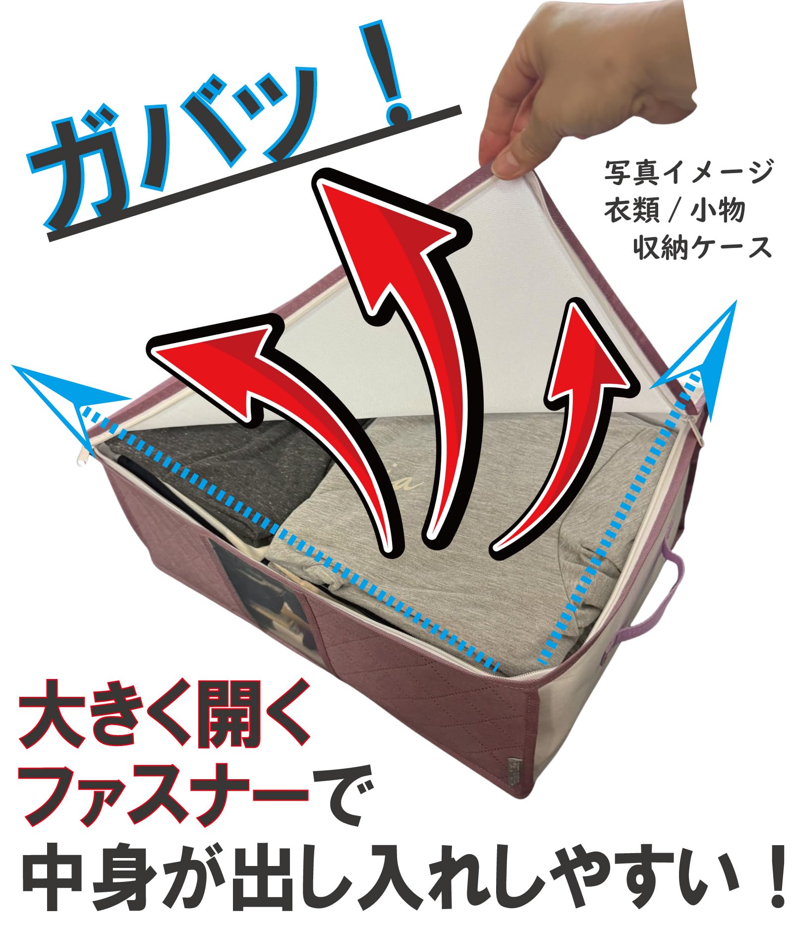 【カンタン・軽量・スッキリ収納】衣類や小物をサッと畳んで入れ、ファスナーを閉めるだけ。プラスチックケースのようにかさばらず、柔らかくて軽い素材だから、クローゼットや棚のすき間など、さまざまなスペースにぴったりフィット。不織布収納ならではの手軽さとスマートさが魅力です。